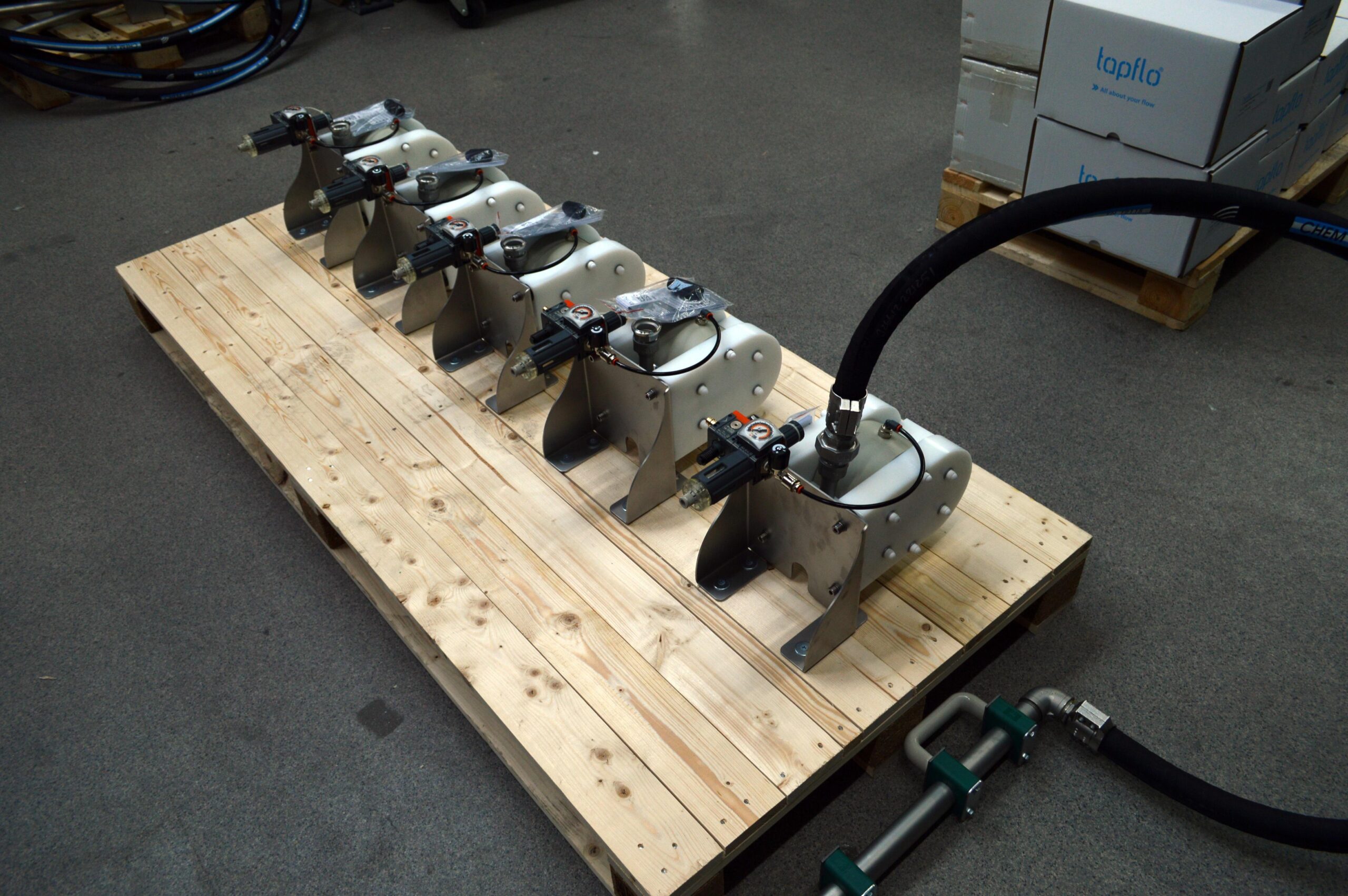 Im selben Projekt werden T50-Pumpen verwendet, um chemische Zusätze aus Fässern zu pumpen und sie dann in die Waschbäder zu dosieren. Das Hauptziel von Tapflo war es, eine Lösung zu liefern, die einen einfachen und sicheren Betrieb ermöglicht. Gleichzeitig haben wir die wichtige Anforderung unserer Kunden erfüllt – die Reduzierung des Platzbedarfs.