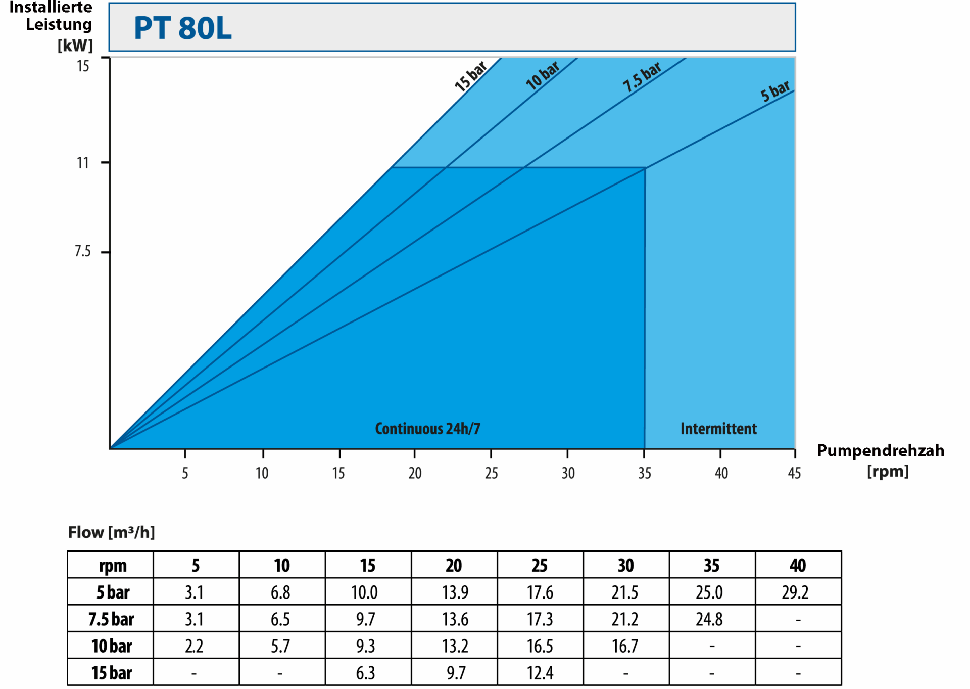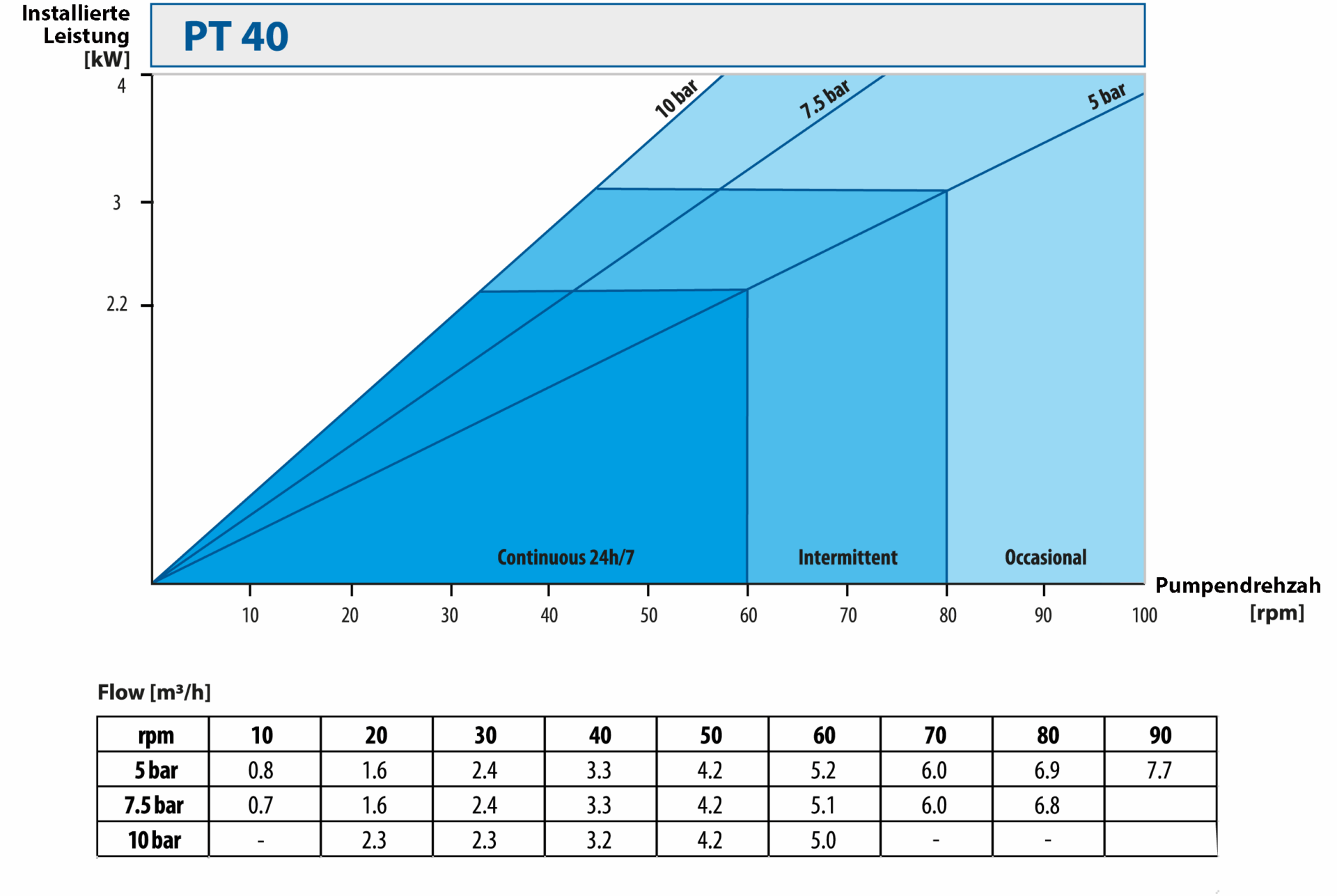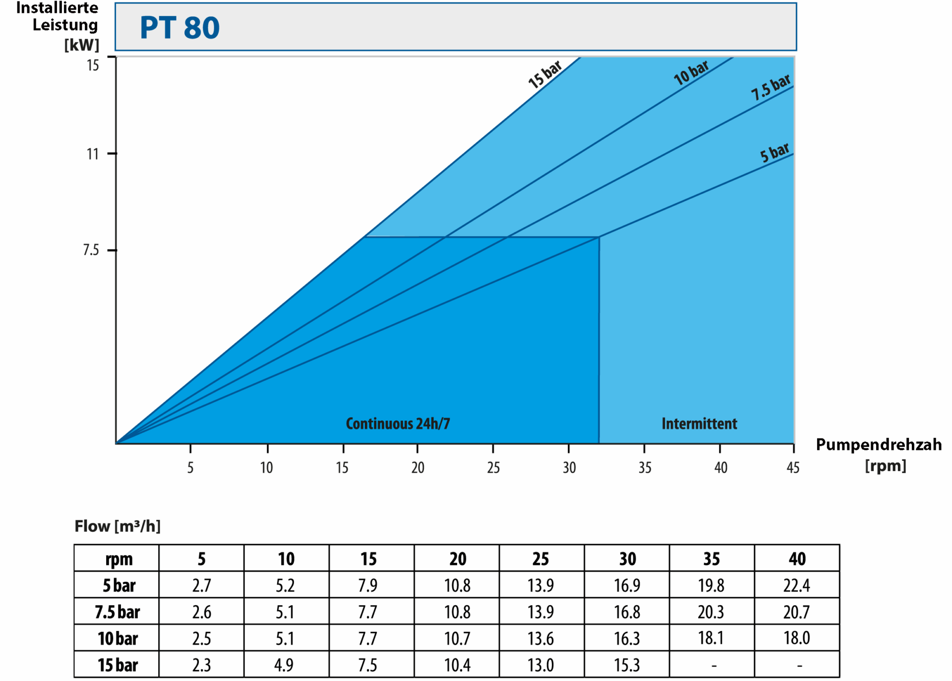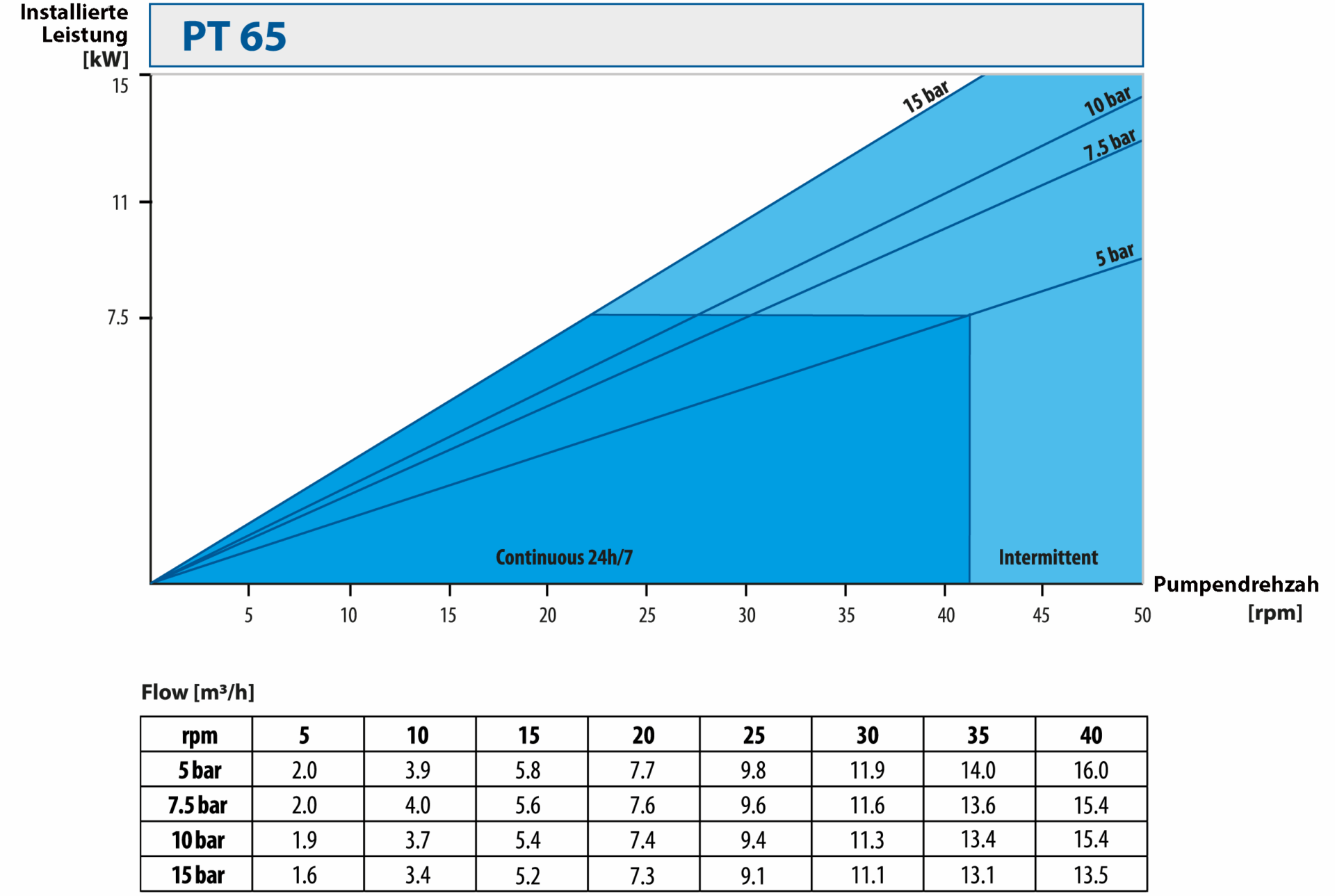 | Größe der Pumpe | Motorleistung [kW] | Pumpendrehzahl [U/min] |