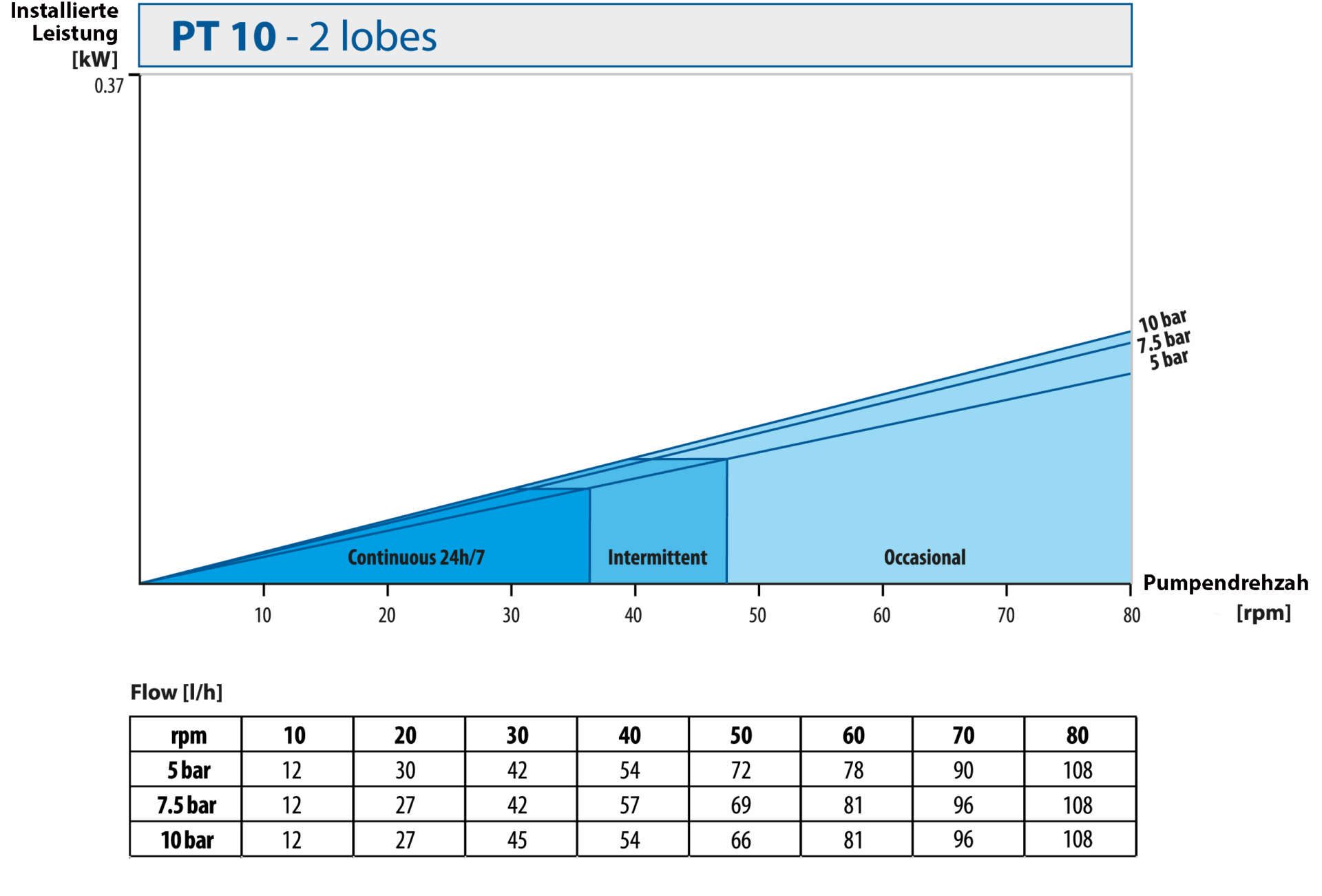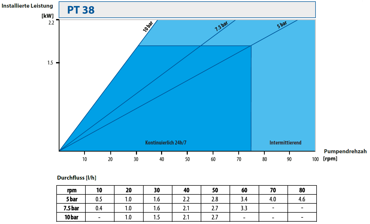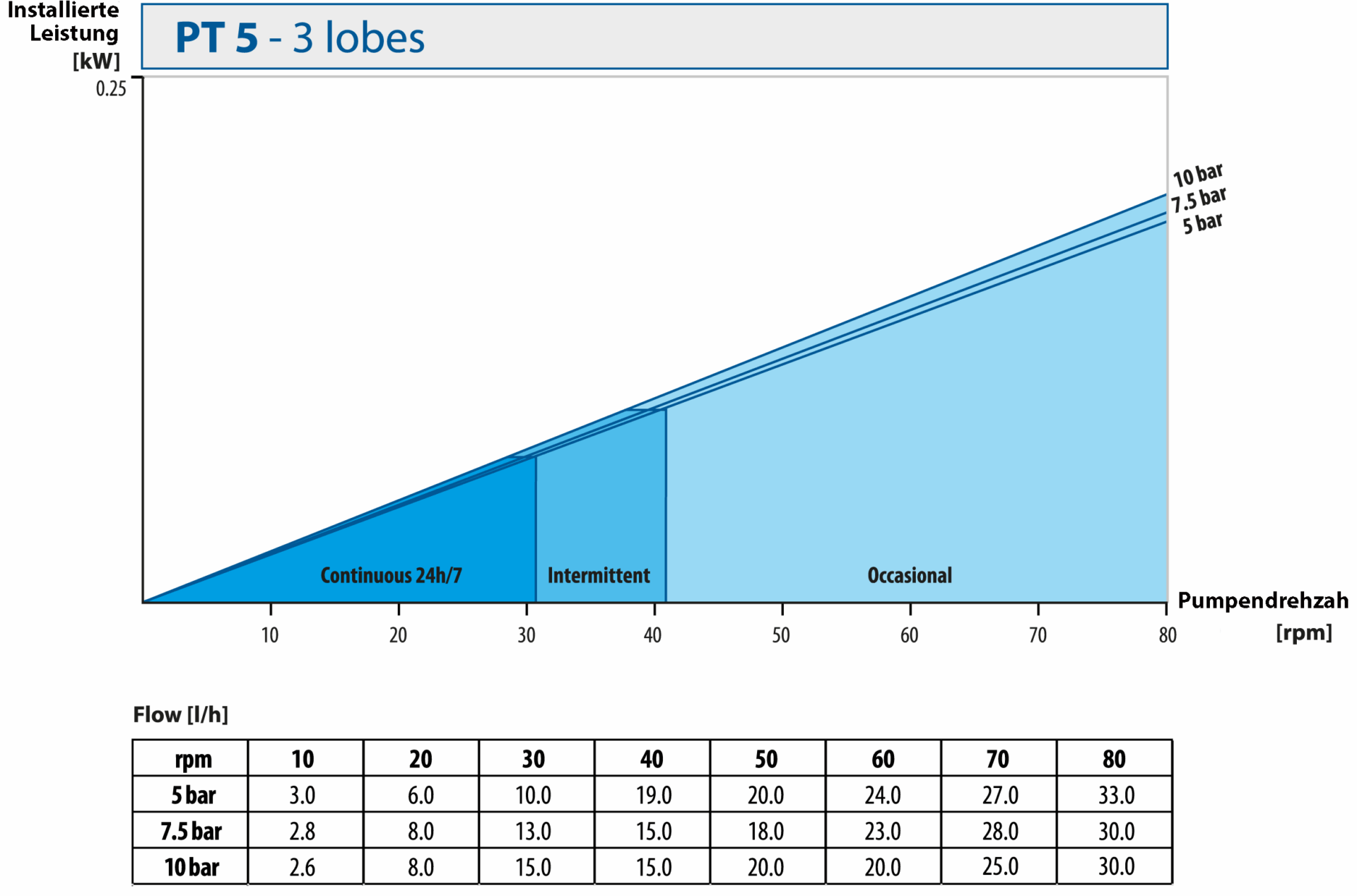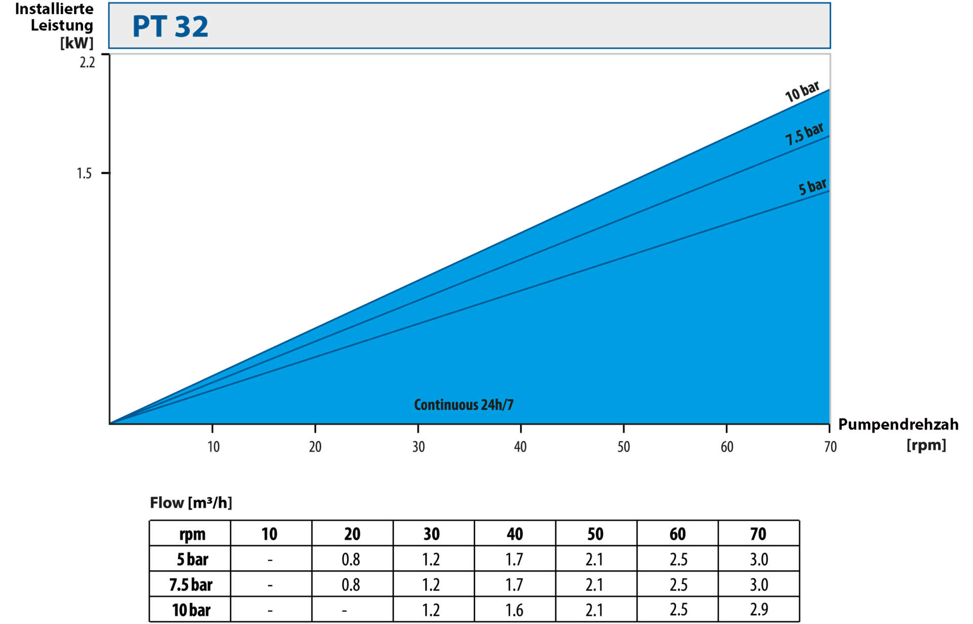 | Größe der Pumpe | Motorleistung [kW] | Pumpendrehzahl [U/min] |