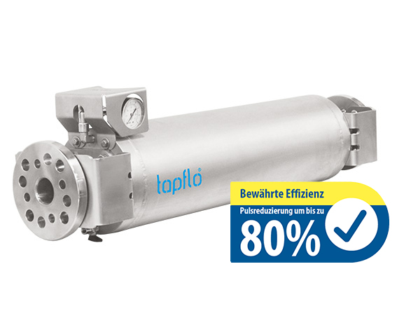 Der aktive Pulsationsdämpfer ist die effizienteste Methode, um Druckschwankungen am Pumpenausgang zu beseitigen. Der Tapflo-Pulsationsdämpfer arbeitet aktiv mit Druckluft und einer Membran und stellt den richtigen Druck automatisch ein, um Pulsationen zu minimieren.