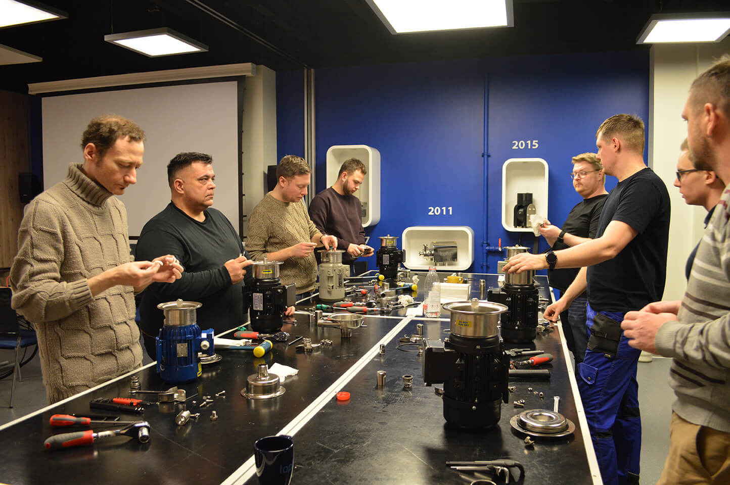 Unsere Schulung basiert auf fundiertem Wissen im Bereich des Pumpenbaus. Die Teilnehmer haben die Möglichkeit, an einem Montagetisch zu arbeiten, an dem Pumpen demontiert und analysiert werden. Dadurch gewinnen sie eine praxisnahe Vertrautheit mit dem Aufbau und der Funktionsweise der Geräte.