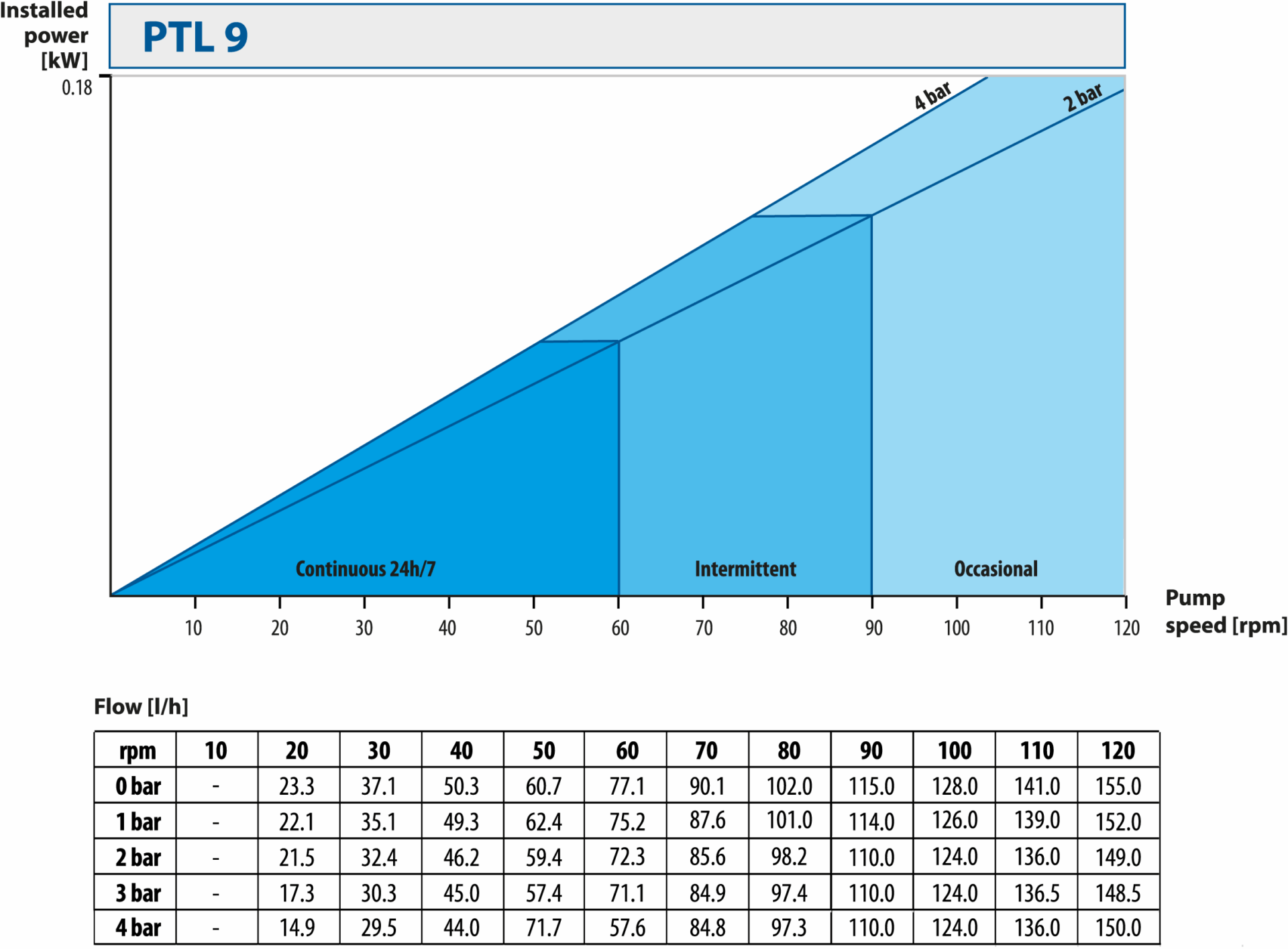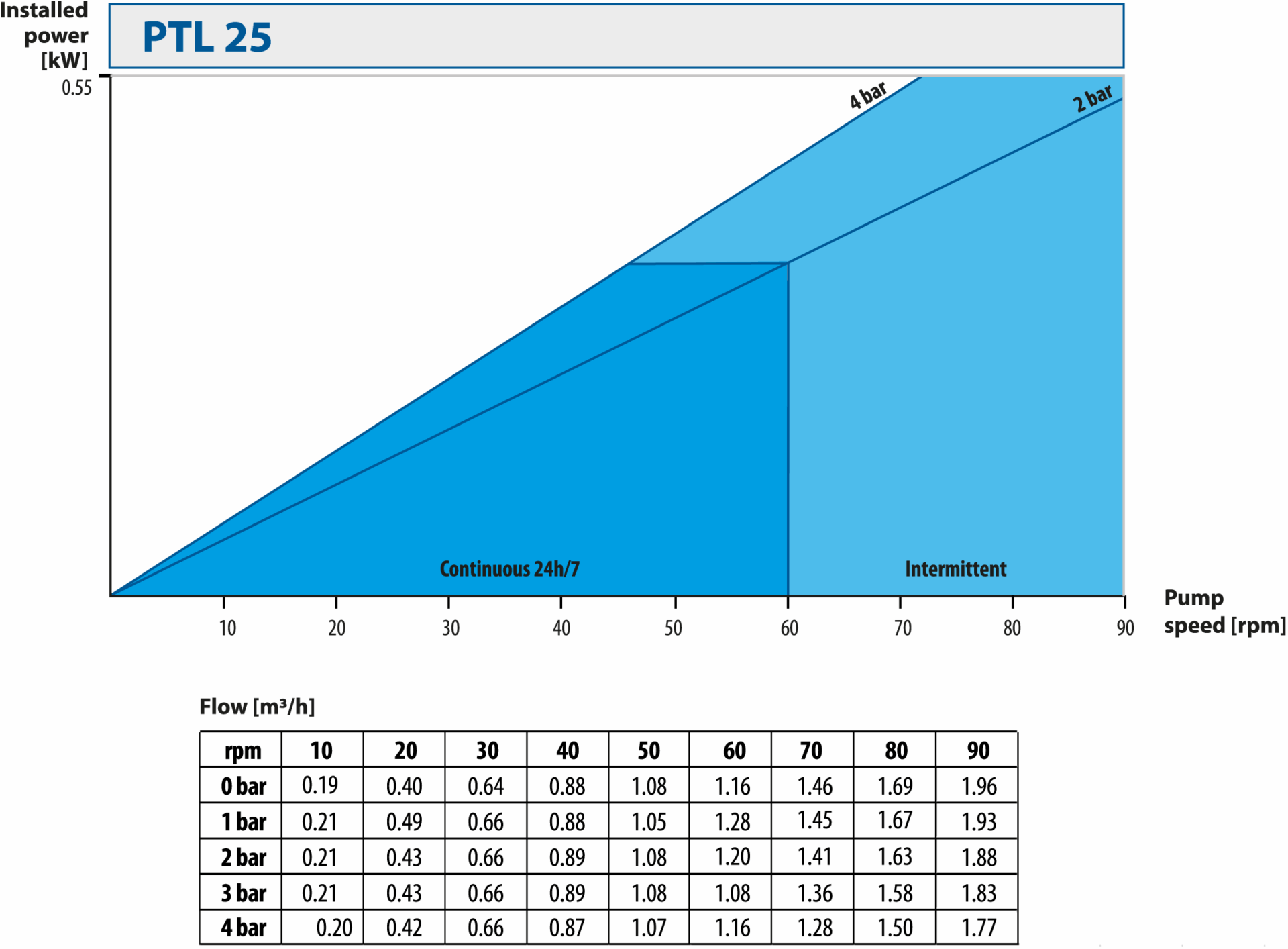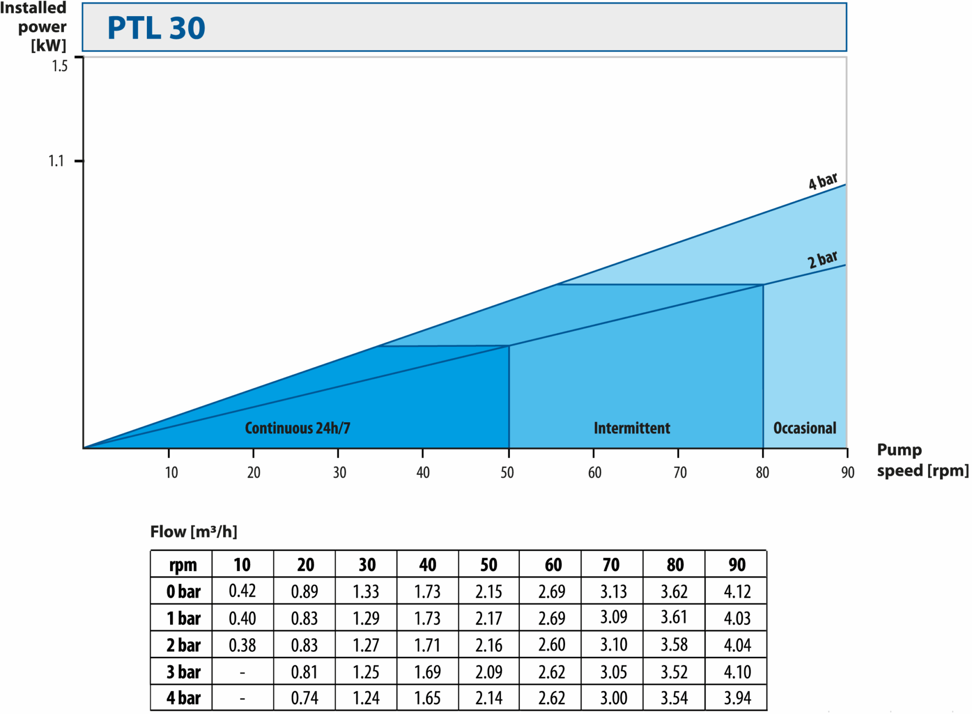 • pump operating time (continuous/intermittent/occasional)