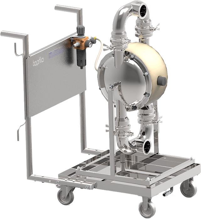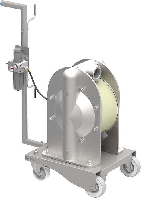 Mobile pump units are available in both hygienic and industrial versions. They are compatible with most Tapflo pumps.