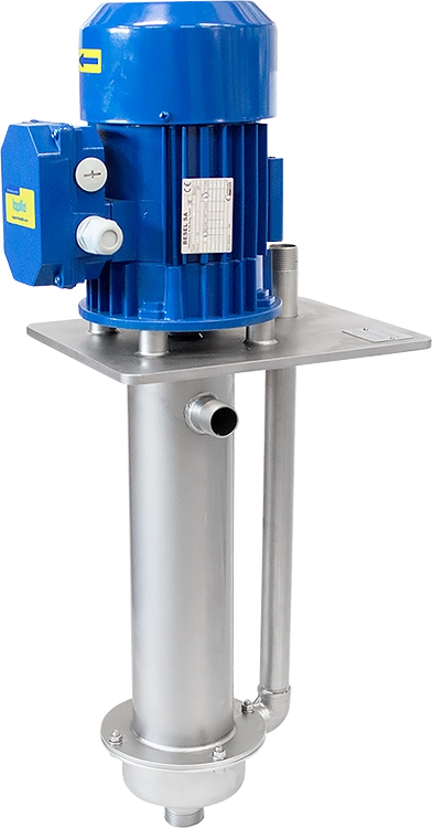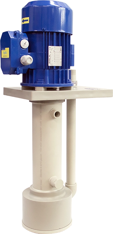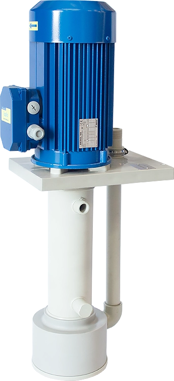 Vertical centrifugal pumps designed for pumping or circulating media in industrial applications. These are single-stage pumps designed with a housing submerged directly in the liquid, driven by an electric motor and equipped with an open impeller providing good solids handling capabilities. CTV centrifugal pumps are available in plastic (PP or PVDF) or AISI 316L stainless steel.