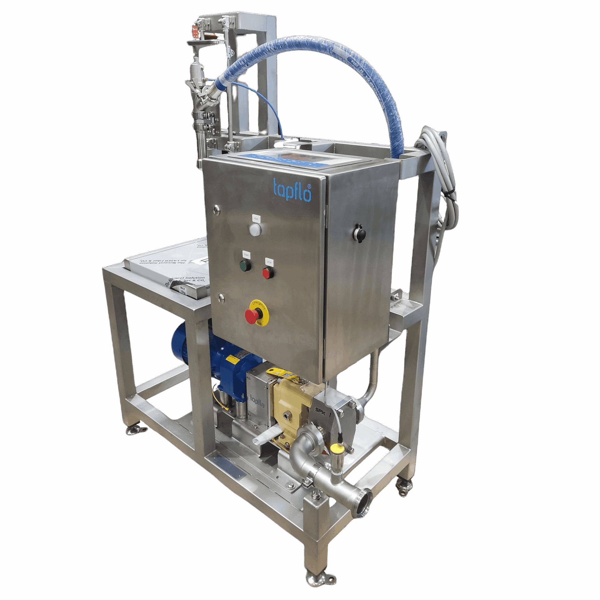 Vores avancerede styresystem giver problemfri betjening med en intuitiv brugergrænseflade. Det 7-tommer store farvedisplay gør det nemt at interagere og har forudindstillede fyldeprogrammer til forskellige produkter og beholderstørrelser. Batchfyldningsfunktionen gør det muligt for operatørerne at starte fyldning med et tryk på en knap eller via en fodpedal, hvilket er særligt nyttigt, når man bærer beskyttelseshandsker. Operatørerne kan downloade detaljerede fyldningsrapporter via en USB-port, hvilket muliggør procesoptimering og compliance. Systemet tilbyder også tilpassede pumpehastigheder for at skræddersy påfyldningsprocessen til specifikke behov. Integrerede sikkerhedsfunktioner omfatter en nødstopknap (E-STOP), registrering af beholdertilstedeværelse og låsekontakter til sikker drift. Det IP65-klassificerede kontrolskab i rustfrit stål beskytter mod fugt og støv.