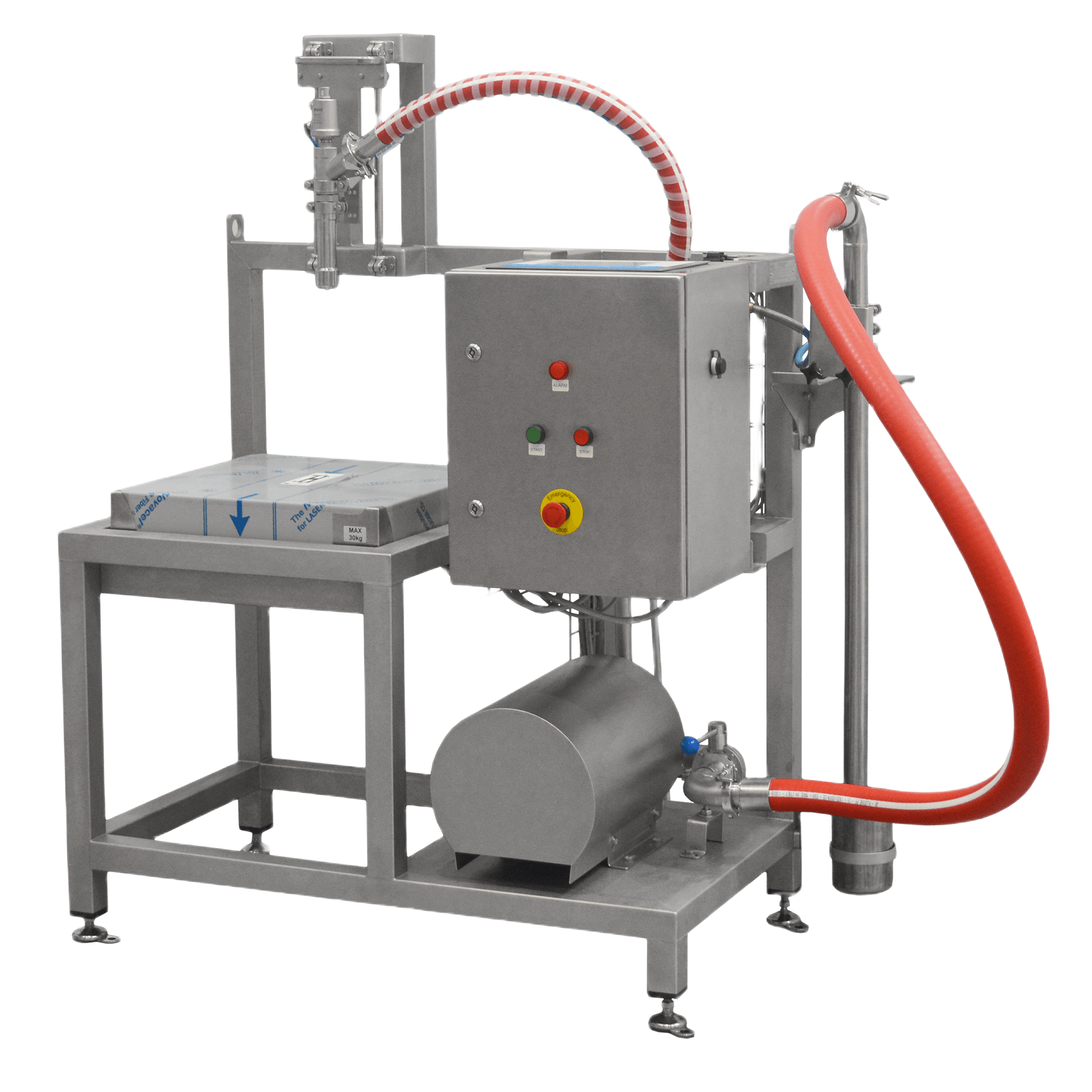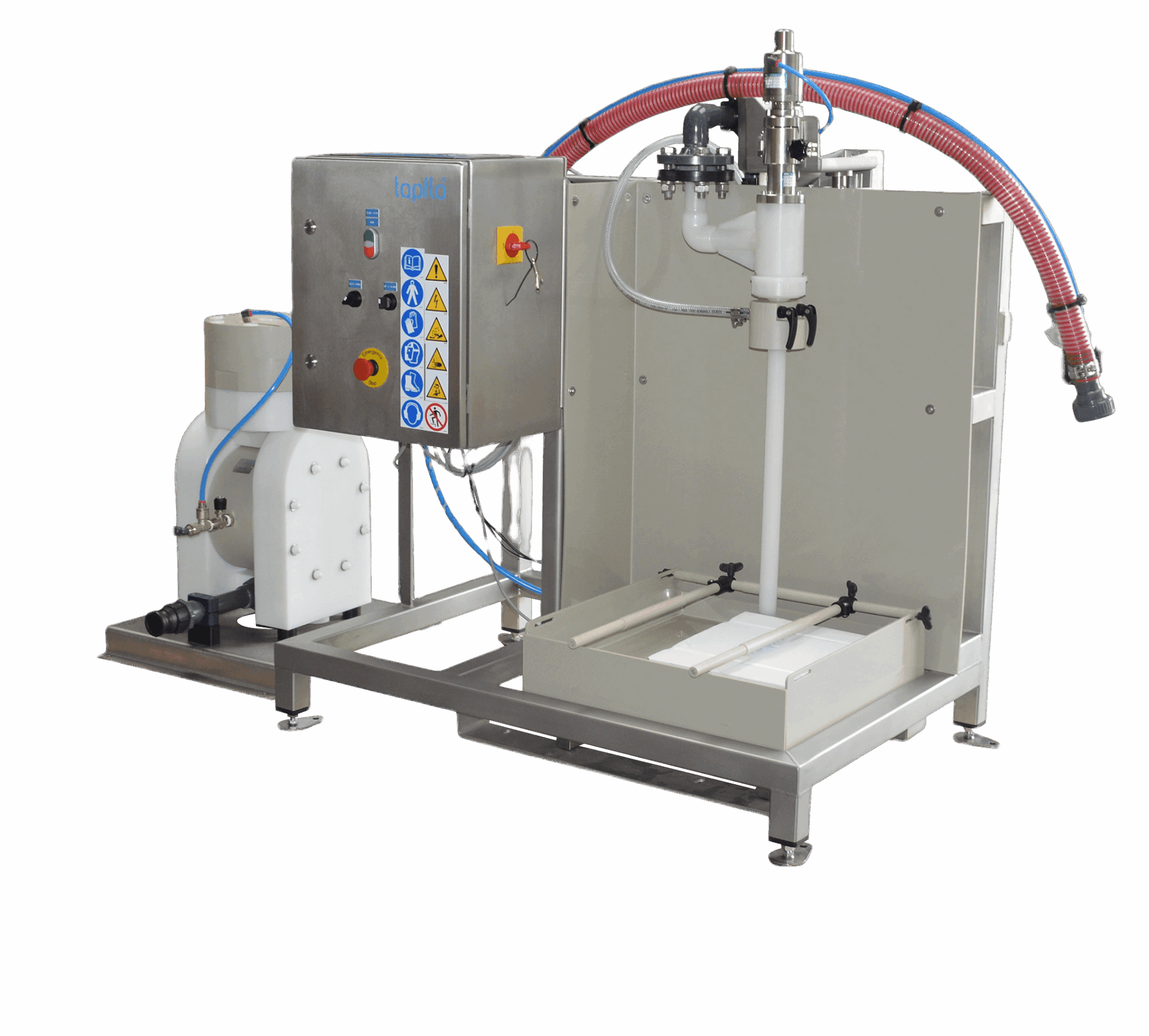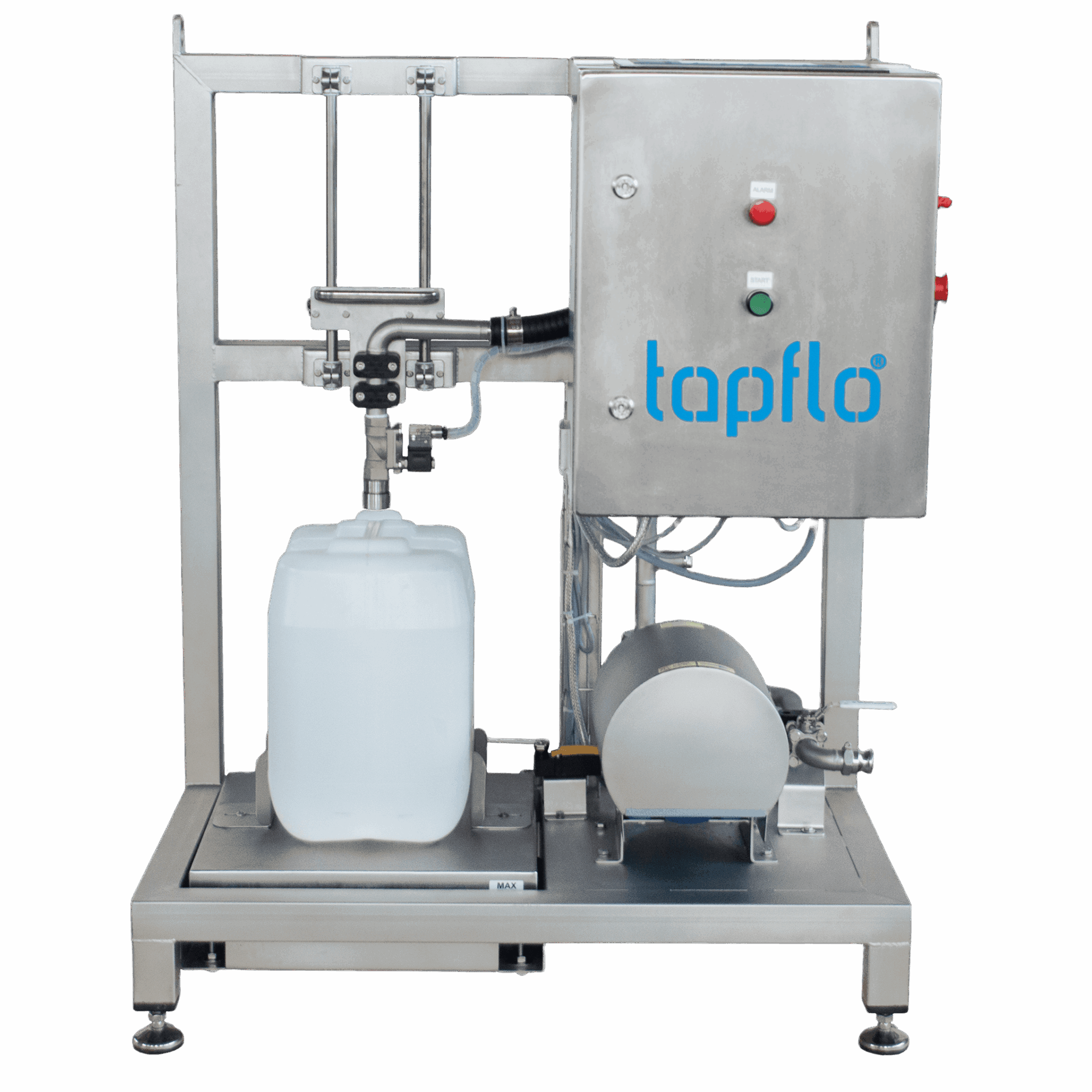 Fyldemaskinesystemet kan i høj grad tilpasses, så det opfylder dine specifikke behov. Du kan vælge mellem forskellige pumpetyper – f.eks. membranpumper, lobepumper, centrifugalpumper, tandhjulspumper eller peristaltiske pumper – afhængigt af produktets viskositet, omrøringsfølsomhed og andre egenskaber. Komponenter, der kommer i kontakt med mediet, er fremstillet af syrefast stål AISI 316 eller plast som f.eks. polypropylen til aggressive medier. Til anvendelser, der involverer sådanne medier, omfatter systemet en drypbakke af plast for ekstra sikkerhed og bekvemmelighed. Vægtskalaerne fås i mange forskellige størrelser, hvilket giver fleksibilitet til at tilpasse sig forskellige beholderdimensioner.