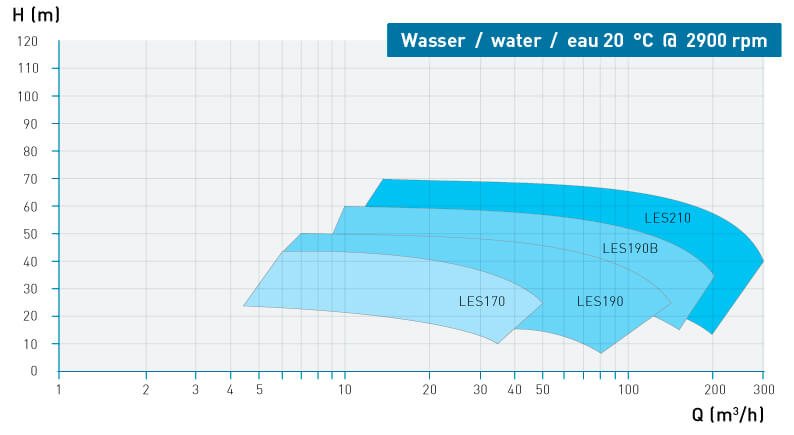 8 pumpestørrelser kan leveres, med kapacitet op til 82 m3/h og et maksimalt tryk på 10 bar. Ingen fysisk kontakt mellem rotorerne. Pumper med skyllede dobbelte mekaniske akseltætninger, tåler uendeligt tørløb. Husmateriale: støbejern. Service kits sikrer hurtig udskiftning af standard sliddele