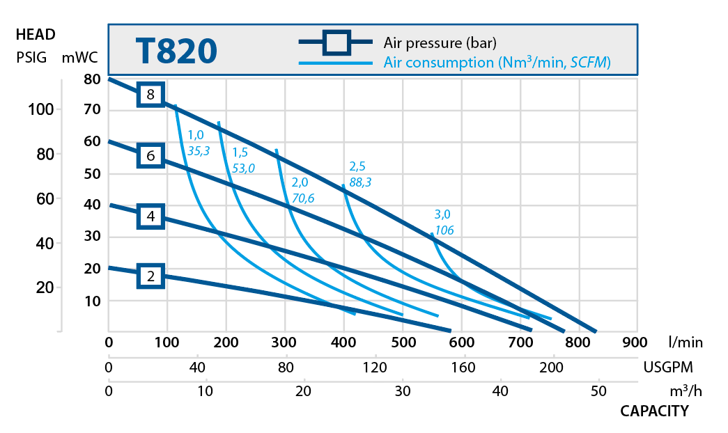 | Pumpekapacitet: | 49 m3/h (820 l/min) | |