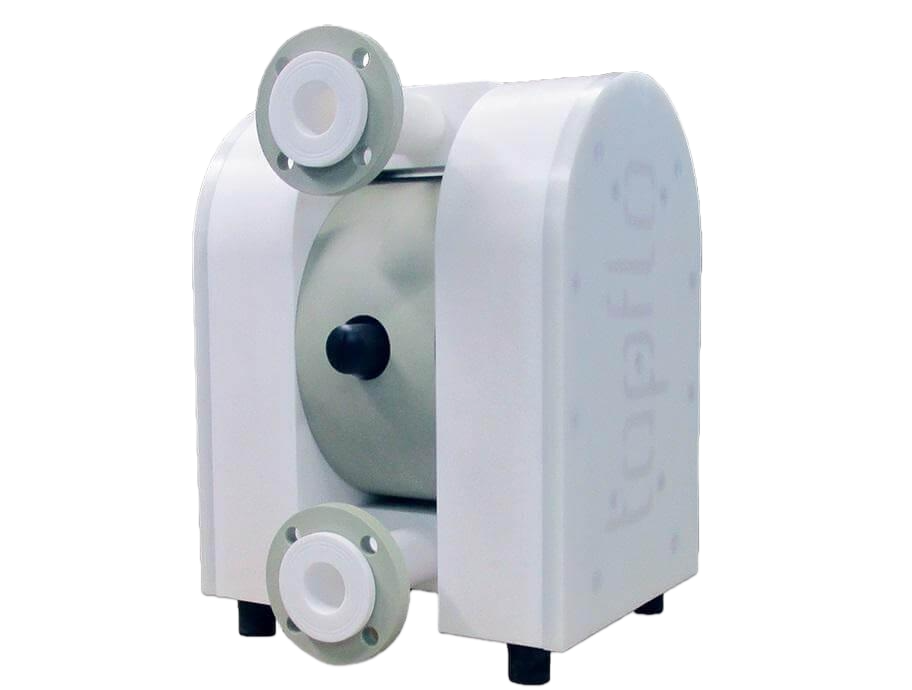 Tapflopumper udført i polyethylene (PE) eller i PTFE, anvendes til transport af næsten enhver form for produkt, selv når det er viskøst, agressivt eller partikelfyldt.