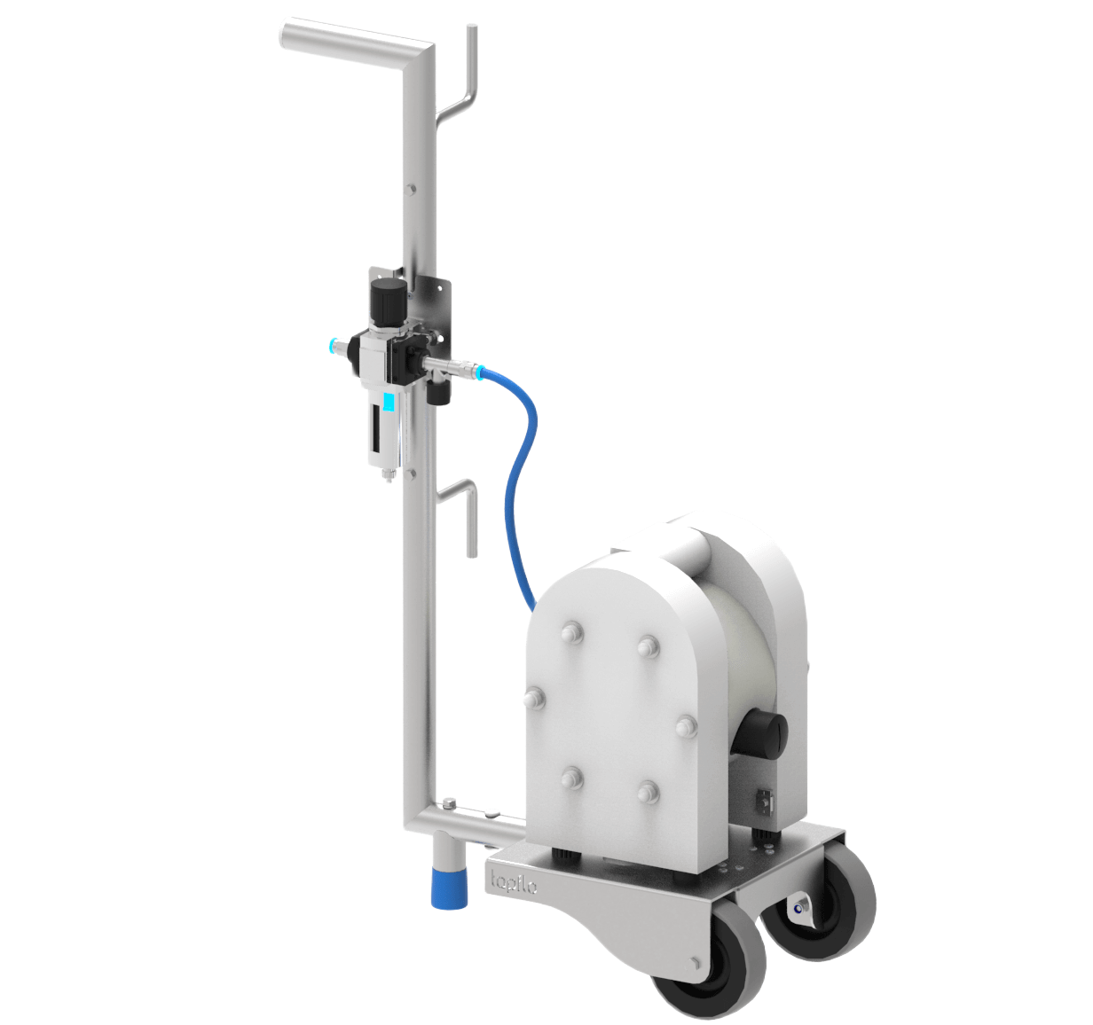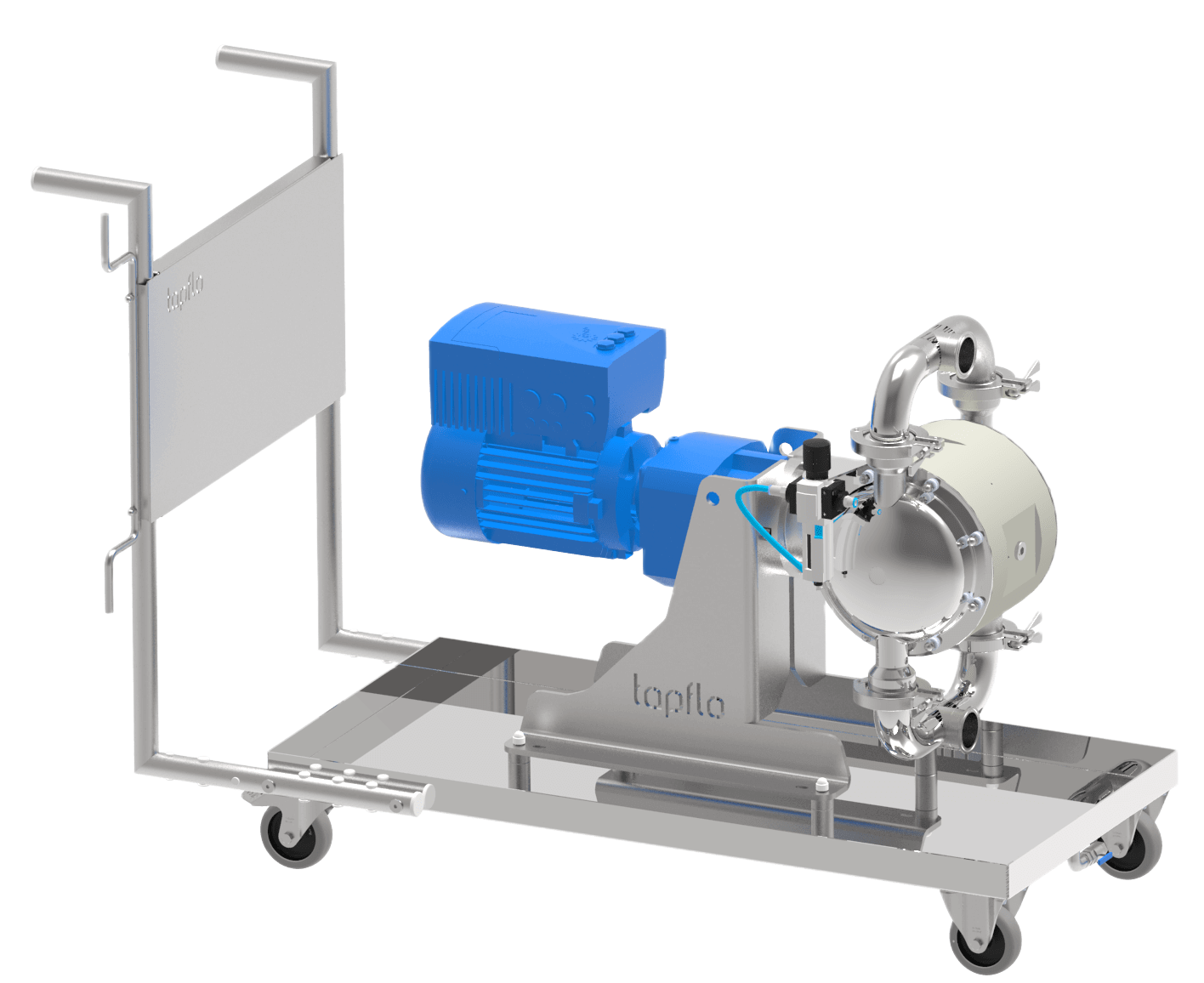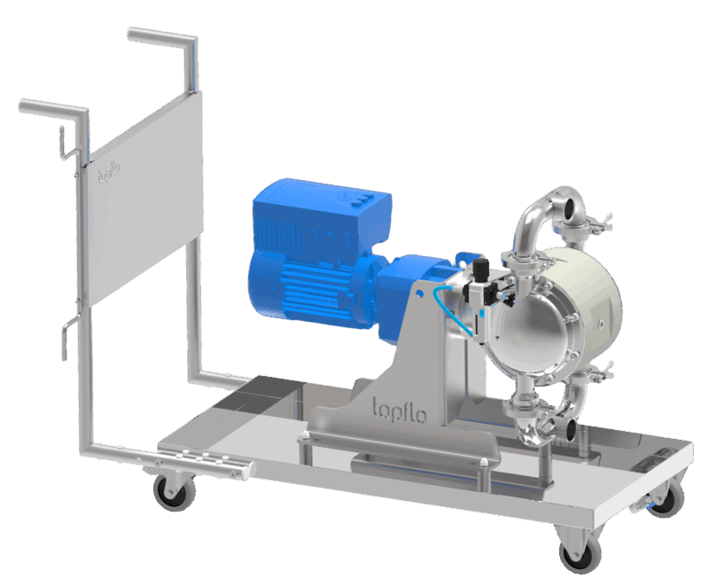 Mobile pumpeløsninger leveres i både hygiejniske og industielle versioner, begge med hver sine løsninger målrettet disse industriers krav og ønsker. Vognene er standardiserede, så de kan momteres med langt de fleste Tapflo pumper, og leveres med kort leveringstid. Vognene kan leveres med en lang rækkes “standard options”, som f.eks: luftbehandlingssæt, ON-OFF kontakt, frekvensomformer, kabel/slangeholder o.s.v.