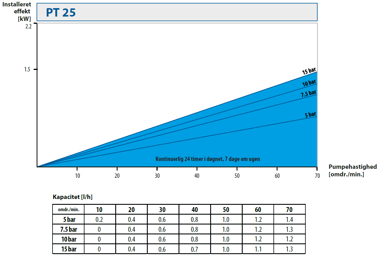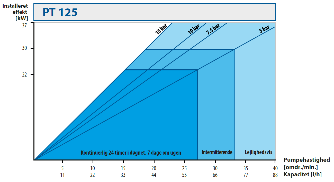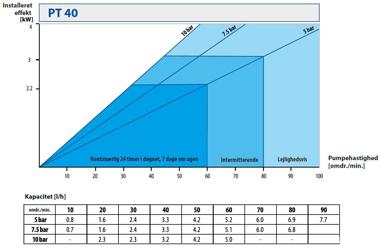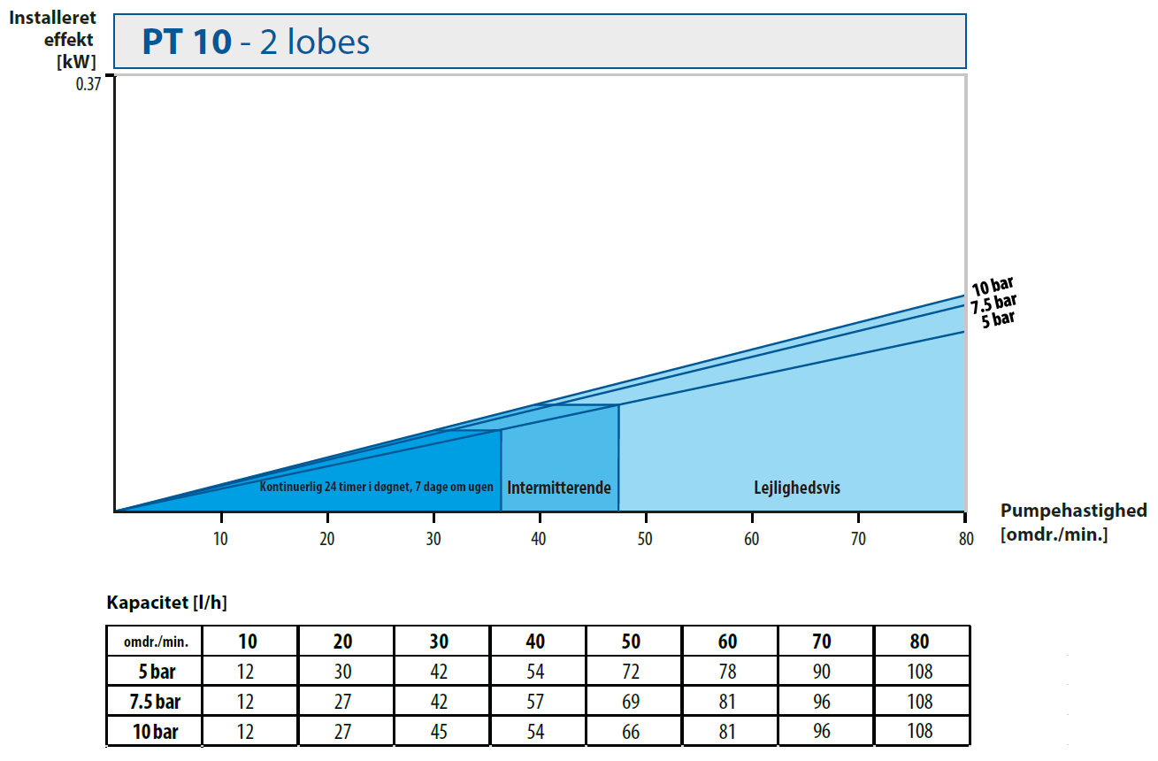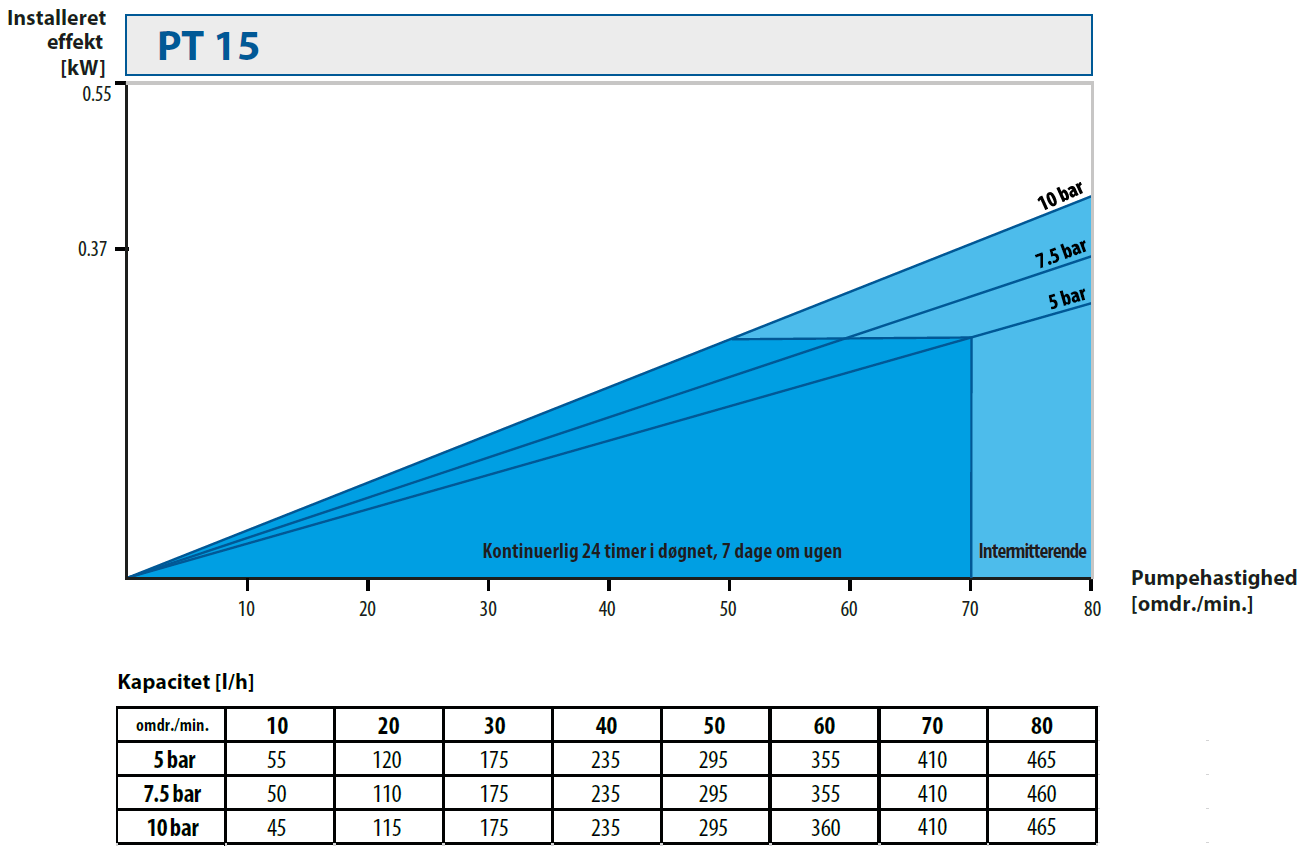 | Pumpestørrelse | Motoreffekt [kW] | Pumpehastighed [omdr./min.] |