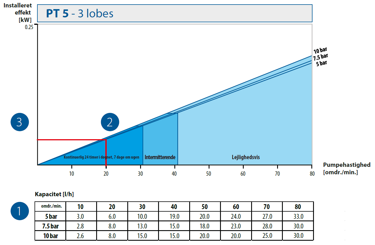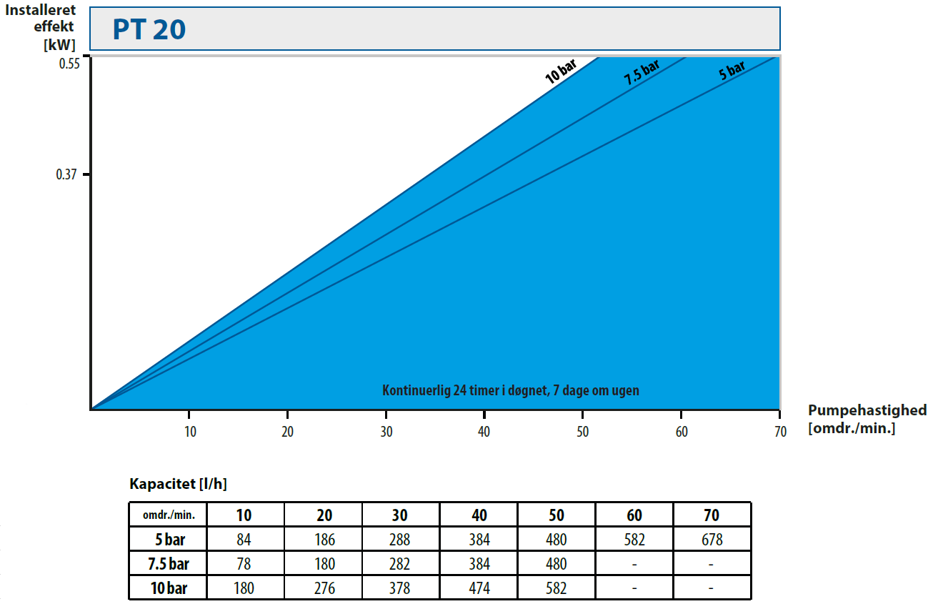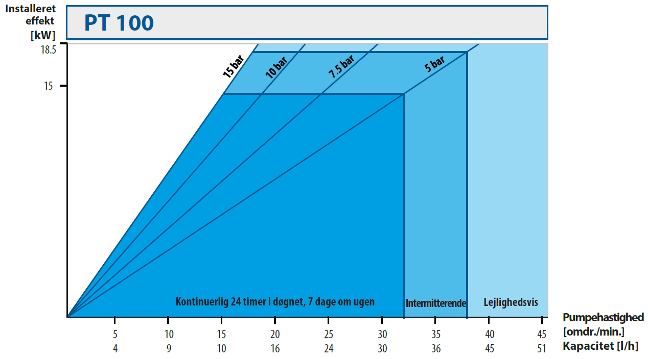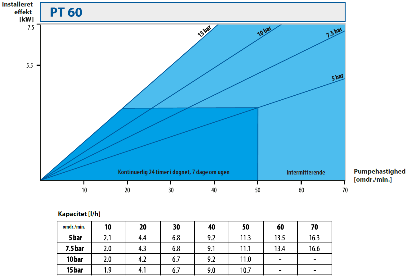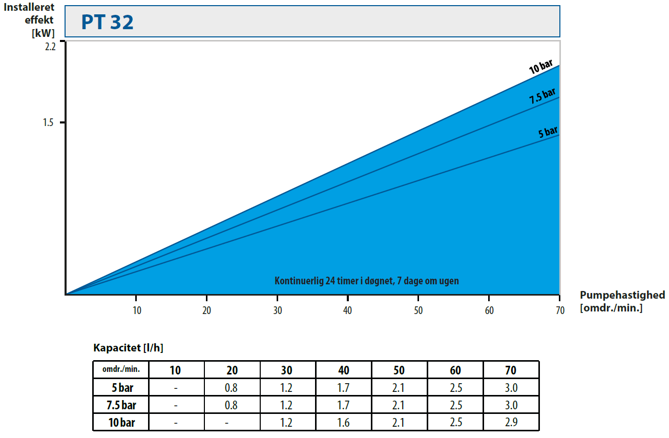 | Pumpestørrelse | Motoreffekt [kW] | Pumpehastighed [omdr./min.] |