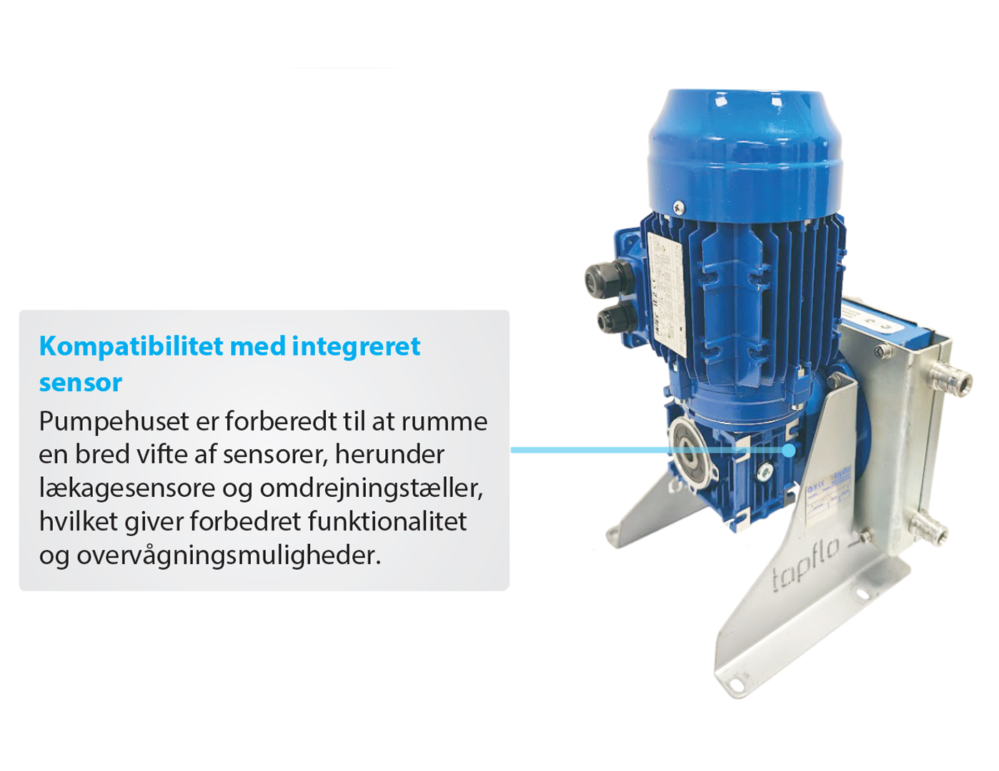 Indbyggede frekvensomformere er den anbefalede løsning for nem styring af pumpehastigheden (kapacitet). Ydermere gør den slangeudskiftning nemmere.