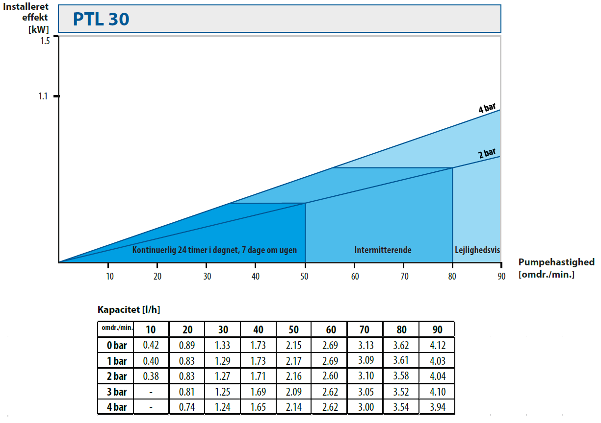 PTL serien anvendes ofte som doseringspumpe, da dens ydelse er liniær med omdrejningstallet. Den har ingen skrøbelige akseltætninger, og er tæt på vedligholdefri. Pumpen er nem at rengøre, da det pumpede medie kun er i kontakt md pumpeslangen og dens forbindelsesporte.