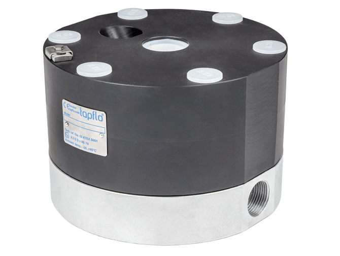 Den aktive pulsationsdæmper, er en yderst effeftive metode til at udjævne trykvariationer i pumpens udløb. Tapflo DT-serie pulsationsdæmperen fungerer ved, at trykluften der også driver pumpen, automatisk indstiller sig til det tryk, der giver mindst mulige trykvariationer. Ved elektriske pumper, anvendes pulsationsdæmperen i “statisk mode”, hvor funktionen opnås ved at tilføre et fast lufttryk. Ved begge installationstyper er luftforbruget minimalt.