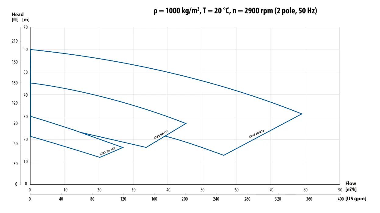 8 pumpestørrelser kan leveres, med kapacitet op til 82 m3/h og et maksimalt tryk på 10 bar. Ingen fysisk kontakt mellem rotorerne. Pumper med skyllede dobbelte mekaniske akseltætninger, tåler uendeligt tørløb. Husmateriale: støbejern. Service kits sikrer hurtig udskiftning af standard sliddele