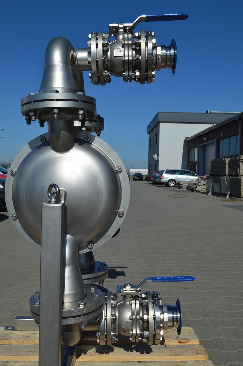 The T 820 s pump is a diaphragm pump equipped with shut-off valves and Camlock quick couplings designed for emptying IBC (Intermediate Bulk Container) tanks.