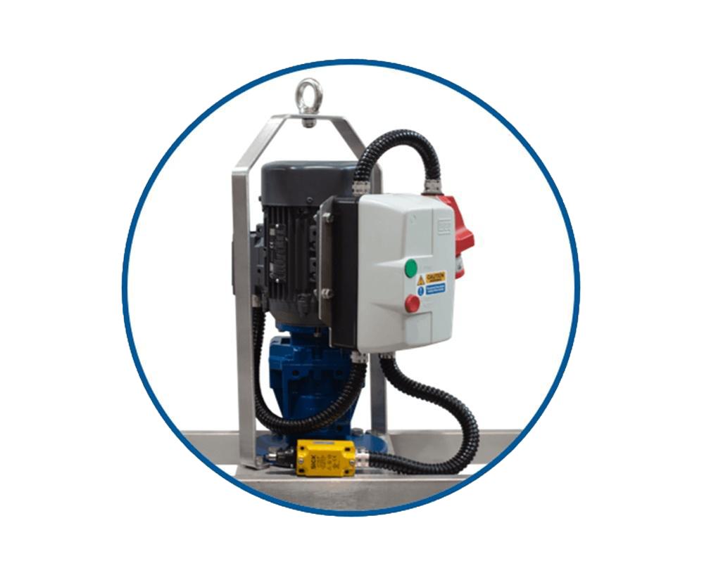 Electrically driven mixers are very quiet during operation, so we equip them with safety switches that stop the mixer if its frame is accidentally raised above the frame of the IBC.