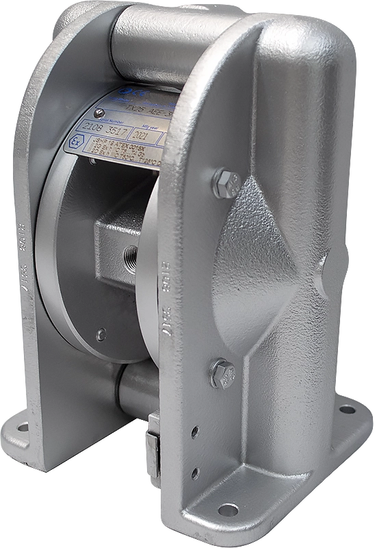 Designed for hazardous applications, such as chemicals. The use of a double diaphragm significantly reduces the risk of leakage of potentially hazardous or valuable media into the air distribution system and the surrounding environment.