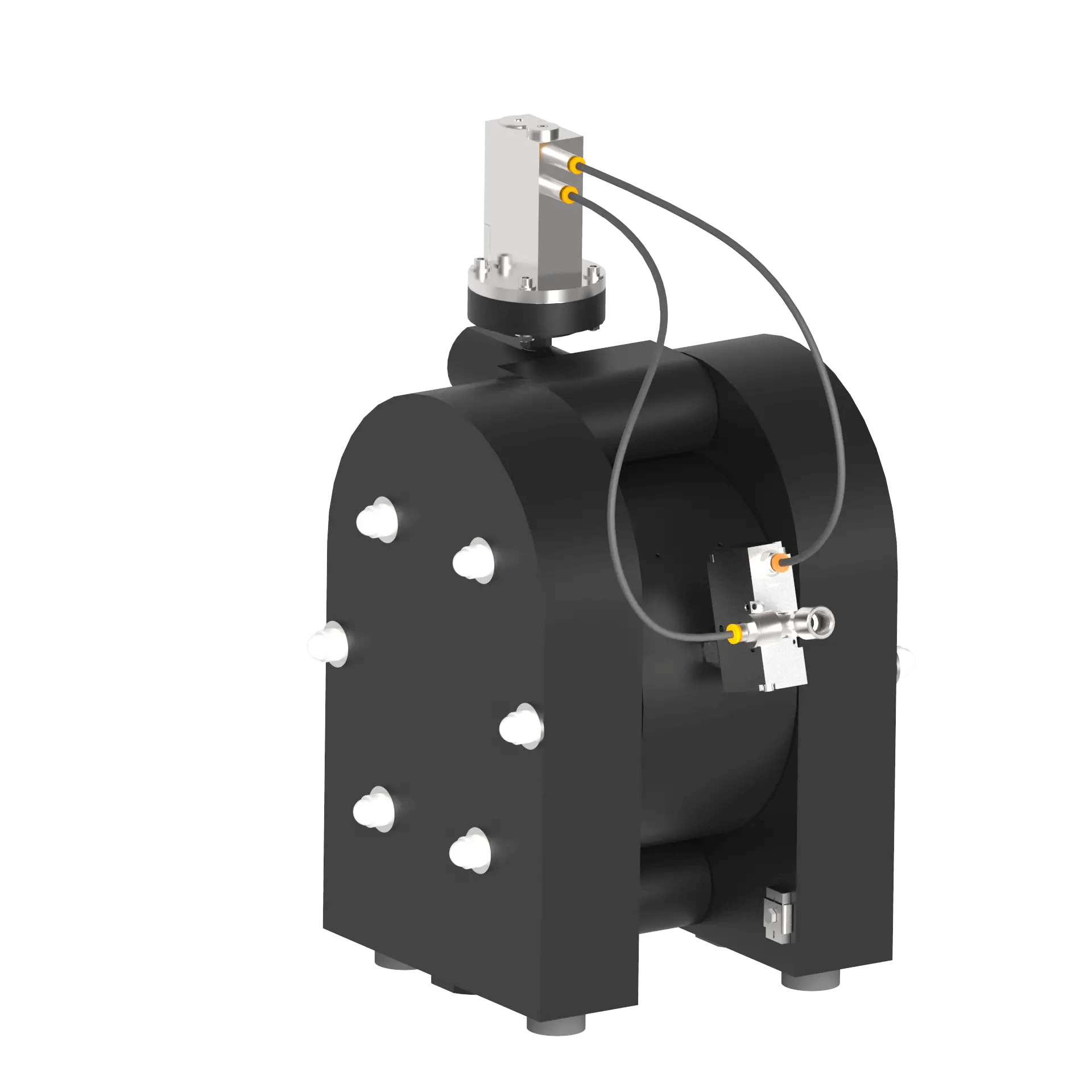 The solution is fully pneumatic and can be powered by the same air as the diaphragm pump, which facilitates installation and operation of the device.