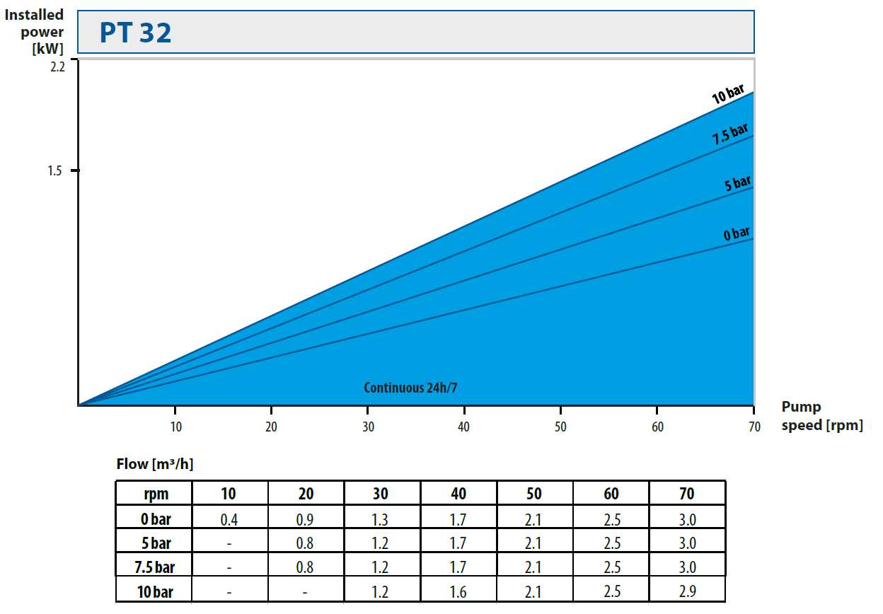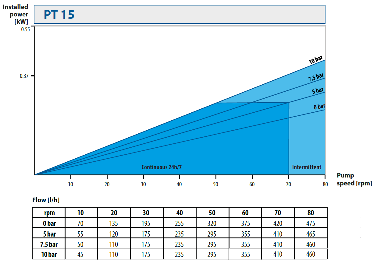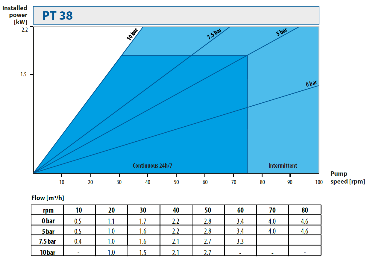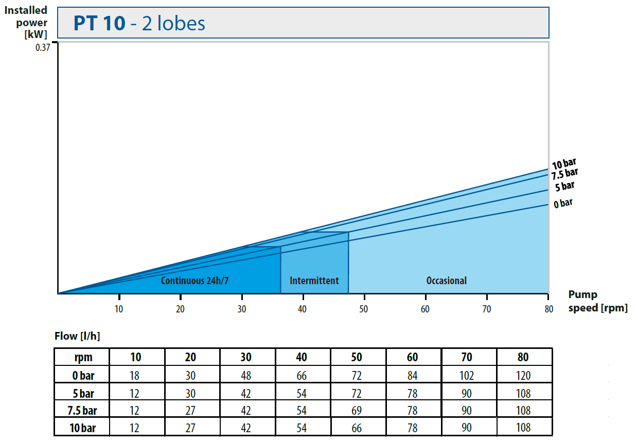 • Adjustable flow and precise dosing. Flexibility in flow rates and precise dosing accuracy of approximately ±5% by adjusting the speed, such as with a frequency converter.