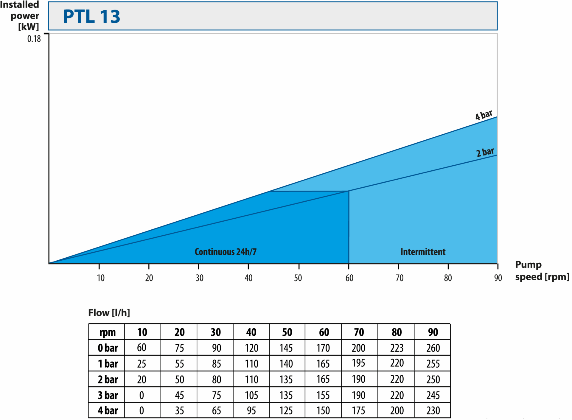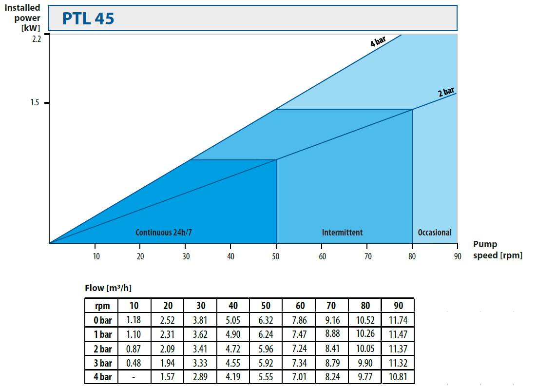 • pump operating time (continuous/intermittent/occasional)