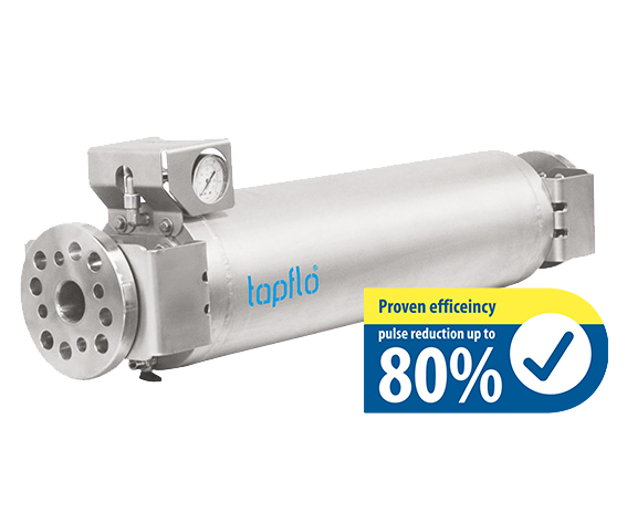 The active pulsation dampener is the most efficient way to remove pressure variations on the discharge of the pump. The Tapflo pulsation dampener works actively with compressed air and a diaphragm, automatically setting the correct pressure to minimize the pulsations.
