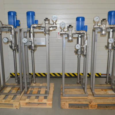 The units are used on a washing line for parts manufactured for the aerospace industry. CTV pumps are used for circulating and filtering washing liquids – mainly sodium hydroxide (NaOH). T50 pumps are used for unloading chemical additives from barrels and then into washing baths.