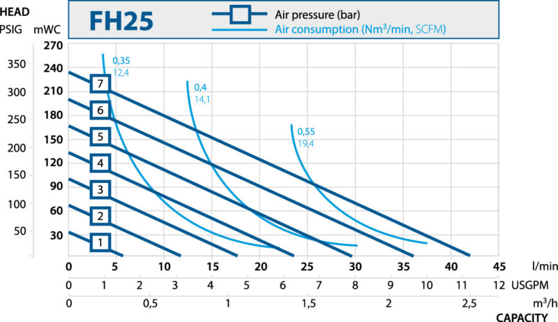 | Pump capacity: | 18 m3/h (300 l/min) | |