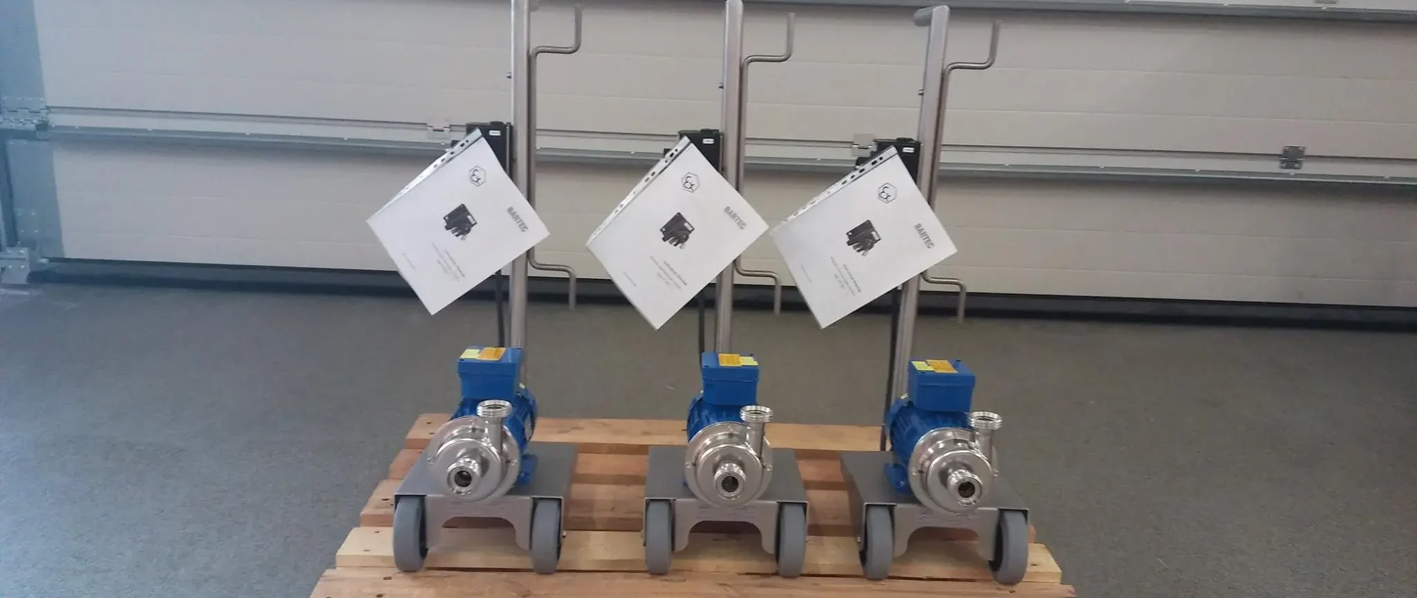 Pompa odśrodkowa higieniczna Tapflo CTH, zamontowana na wózku S268X, dla użytkownika końcowego w przemyśle destylacyjnym. To zaprojektowane na zamówienie rozwiązanie posiada certyfikaty FDA i Atex.
