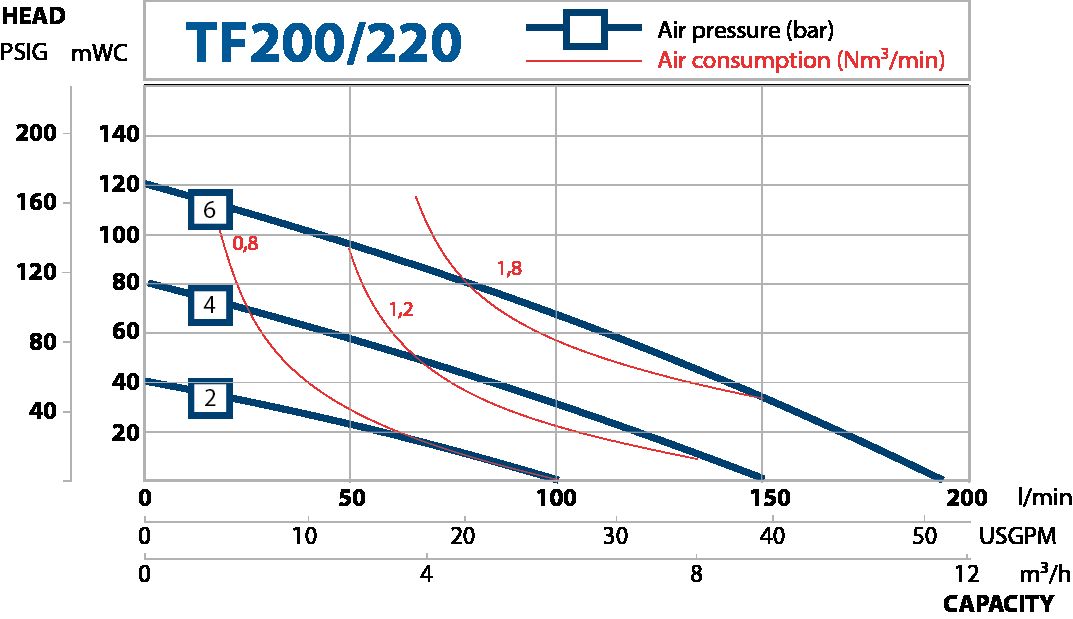 L’unica differenza tra la pompa TF e una pompa a doppia membrana pneumatica standard è che la pompa non è alimentata direttamente con aria, ma attraverso un amplificatore di pressione.