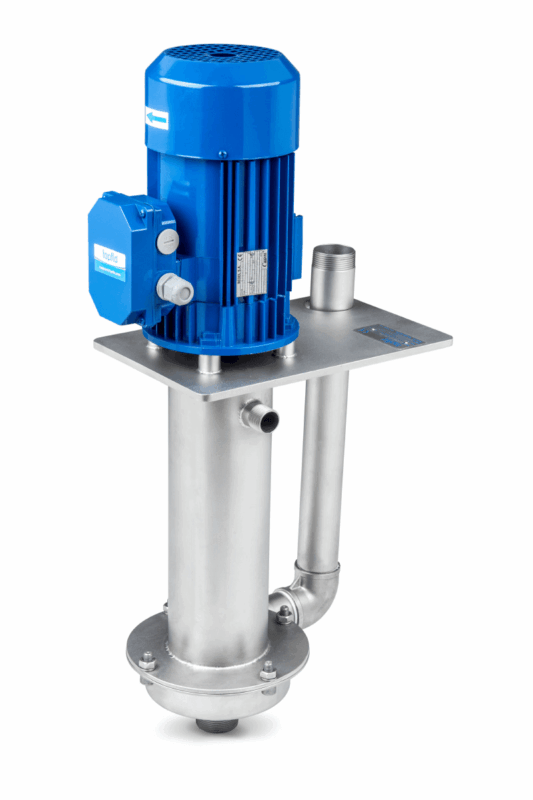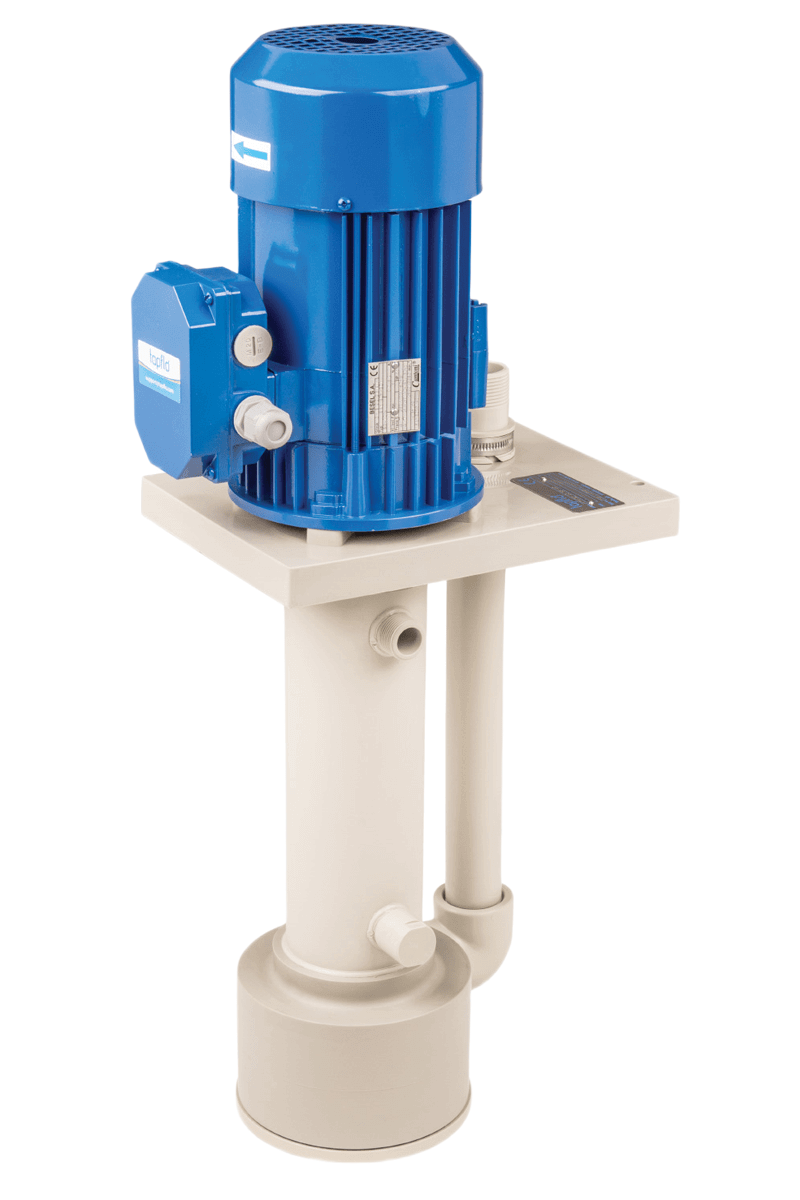 Pompe centrifughe verticali progettate per il pompaggio o la circolazione di fluidi in applicazioni industriali. Si tratta di pompe monostadio progettate con un corpo immerso direttamente nel liquido, azionate da un motore elettrico e dotate di una girante aperta che garantisce buone capacità di trattamento dei solidi. Le pompe centrifughe CTV sono disponibili in plastica (PP o PVDF) o acciaio inossidabile AISI 316L. Le pompe centrifughe verticali CTV non hanno una tenuta meccanica, il che ne facilita la manutenzione. Il design verticale e il montaggio su serbatoio proteggono il motore dall’allagamento con il liquido pompato, e la colonna è immersa nel liquido fino a una profondità di 425 mm (versioni più lunghe su richiesta). Le pompe CTV consentono il pompaggio di liquidi contaminati e possono essere utilizzate, tra l’altro, nell’industria chimica, negli impianti di trattamento delle acque reflue e nel trattamento delle acque.