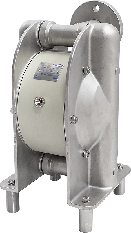 La pompa a membrana Tapflo è azionata ad aria compressa. Due membrane lavorano alternativamente, spingendo il liquido all’interno del sistema di pompaggio. Le valvole a sfera agiscono come valvole di non ritorno, dirigendo il fluido nella giusta direzione.