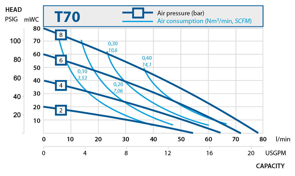 Durante ogni ciclo, la pressione dell’aria dietro la membrana di mandata è uguale all’altezza di sollevamento del liquido sul lato del fluido. Ciò significa che le pompe a membrana Tapflo possono funzionare con la valvola di mandata chiusa senza influire negativamente sulla durata delle membrane.