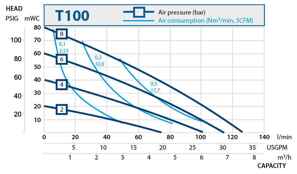 Le pompe intelligenti TC sono una modifica delle pompe standard, dotate della tecnologia brevettata LEAP® (Low Energy Air Pump). Una pompa con tecnologia LEAP® può iniziare a pompare a 0,3 bar senza blocchi – in test ha raggiunto il 70% della portata massima prima delle pompe convenzionali, risparmiando fino al 70% di energia. Caratteristiche e vantaggi: