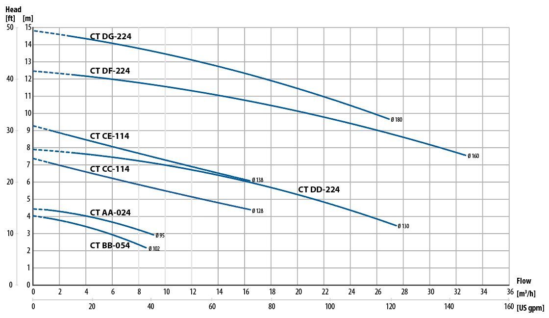 Adatta al pompaggio di solidi della grandezza massima di 6 mm. La girante semi aperta per applicazioni pesanti è disponibile come opzione.