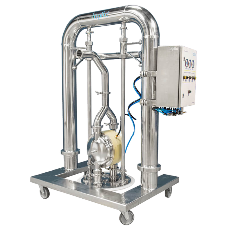 Il sistema è montato su un telaio mobile con 4 ruote, che facilita il trasporto al luogo di stoccaggio dei fusti. Una volta posizionato il dispositivo, i pallet con i fusti possono essere facilmente consegnati utilizzando un carrello elevatore o un transpallet manuale. La struttura di supporto del sistema HVS consente un facile posizionamento del pallet, consentendo l’avvio immediato del processo senza la necessità di un posizionamento preciso.