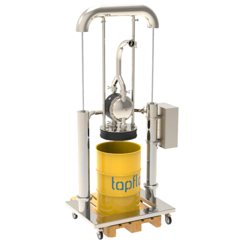 Il passo successivo consiste nell’abbassare la pompa sulla parte superiore del fusto da scaricare. Una volta posizionata la pompa, questa deve essere avviata premendo il pulsante START sul pannello. In modalità automatica, la pompa abbasserà e scaricherà automaticamente il fusto fino a raggiungere il fondo, dopodiché smetterà di abbassarsi e pompare. La pompa può anche essere controllata manualmente dall’operatore dopo aver selezionato la modalità manuale.