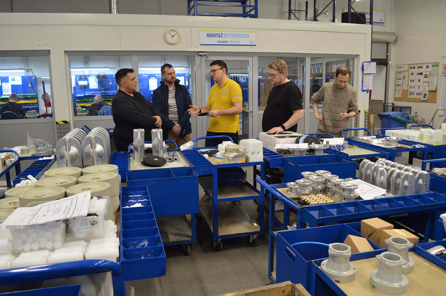 Il nostro addestramento si basa su una conoscenza approfondita della costruzione delle pompe. I partecipanti hanno l’opportunità di lavorare a un banco di assemblaggio, dove le pompe vengono smontate. Ciò consente una familiarizzazione pratica con la loro costruzione e i principi di funzionamento. Un elemento importante del programma è anche il “Factory Tour”, una visita al nostro stabilimento di produzione a Tczew. Durante questa visita, i nostri esperti mostrano come sono i processi produttivi. Questa è un’esperienza unica, grazie alla quale i visitatori possono vedere come vengono create le **pompe industriali di alta qualità** e il prodotto di punta di Tapflo, le **pompe a membrana**.