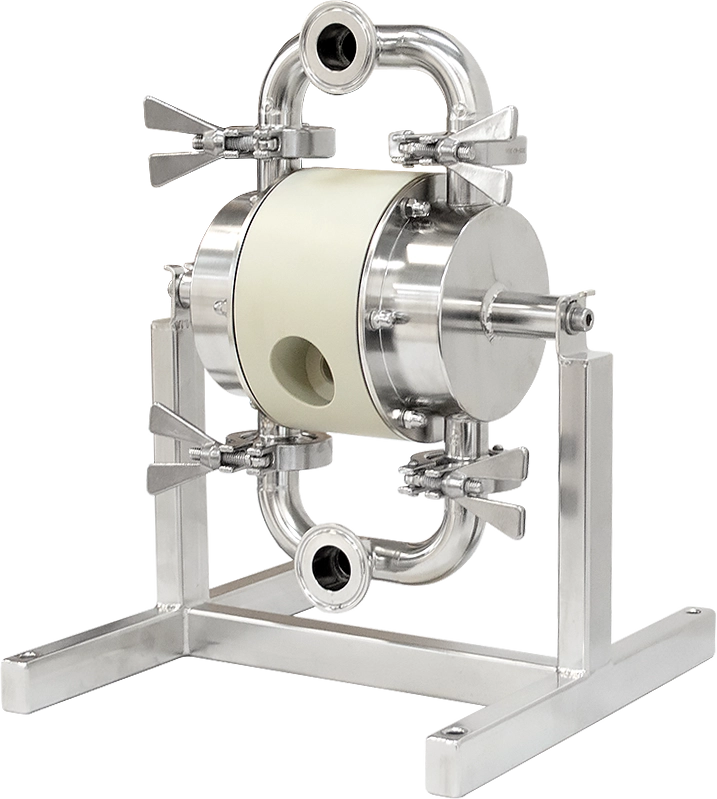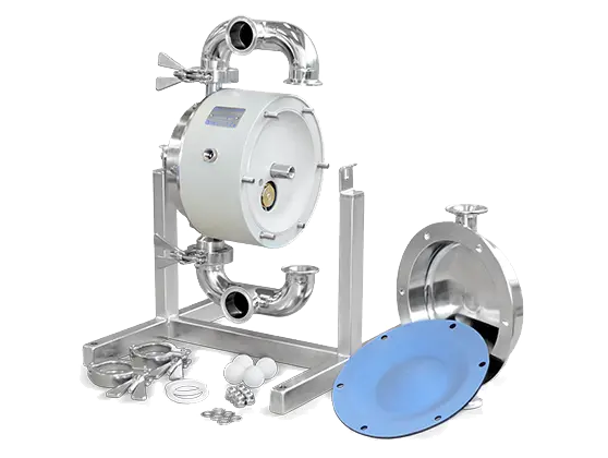 They are compact, robust and easy to maintain, minimizing service costs and process downtime. The main advantages of these pumps are the oil-free air distributor, maintenance-free check valves and full visibility for inspection of all wetted parts. There are no hidden spaces where bacteria could grow. The pump can also be cleaned and sterilized in place (CIP and SIP).