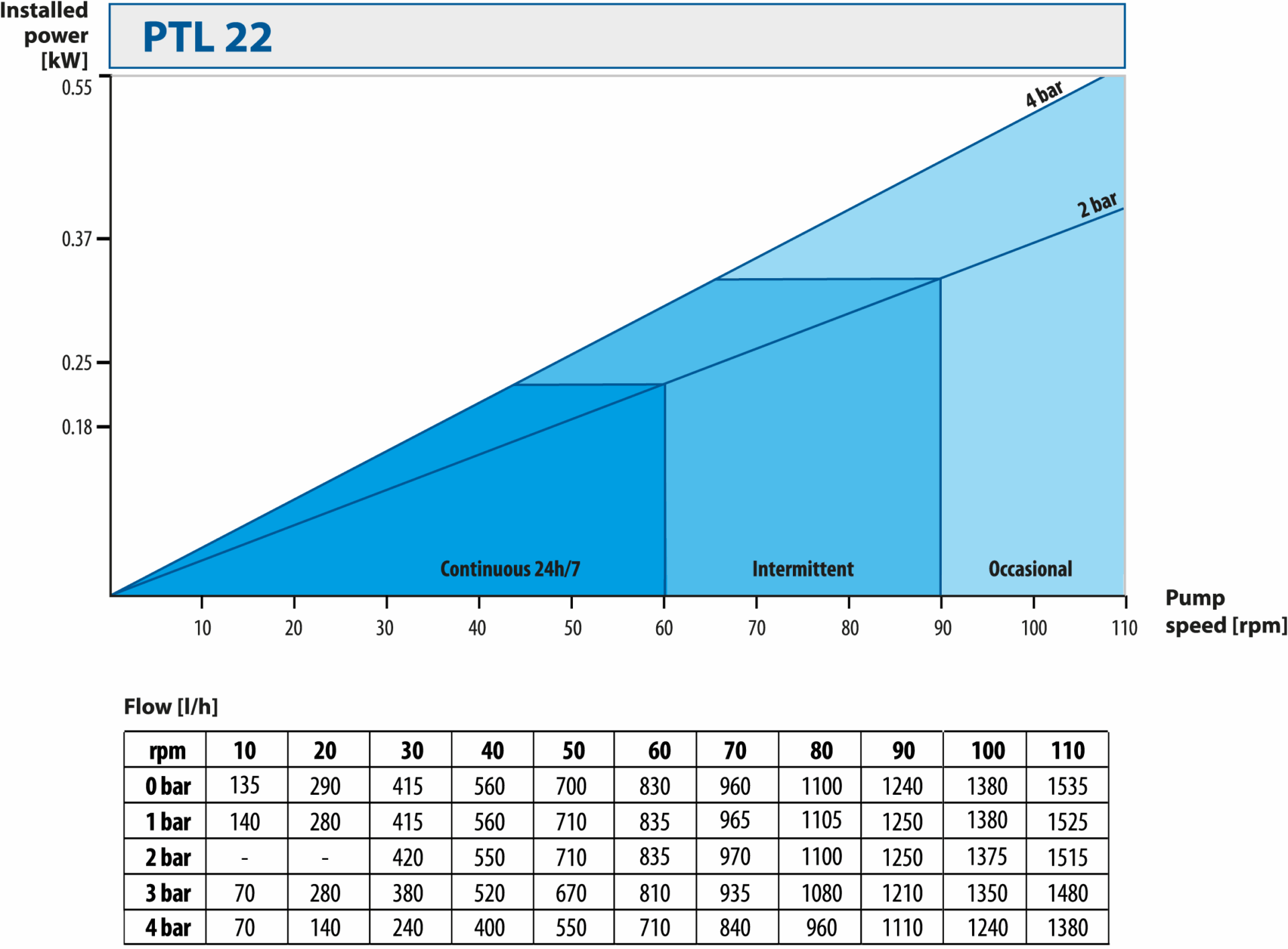 • pump operating time (continuous/intermittent/occasional)