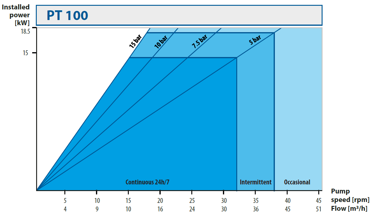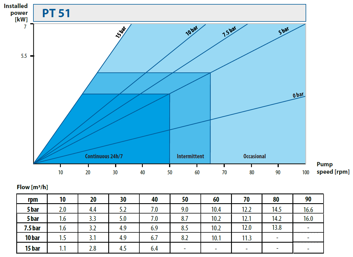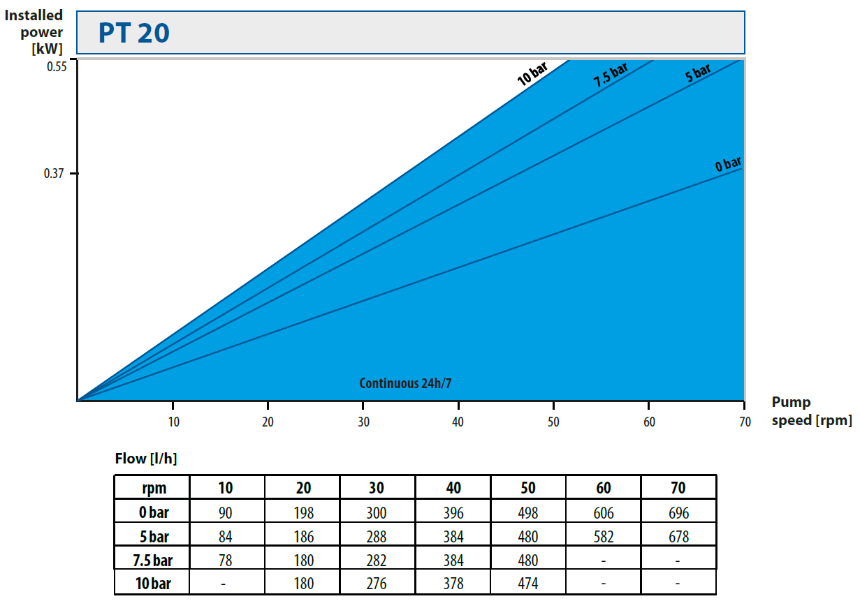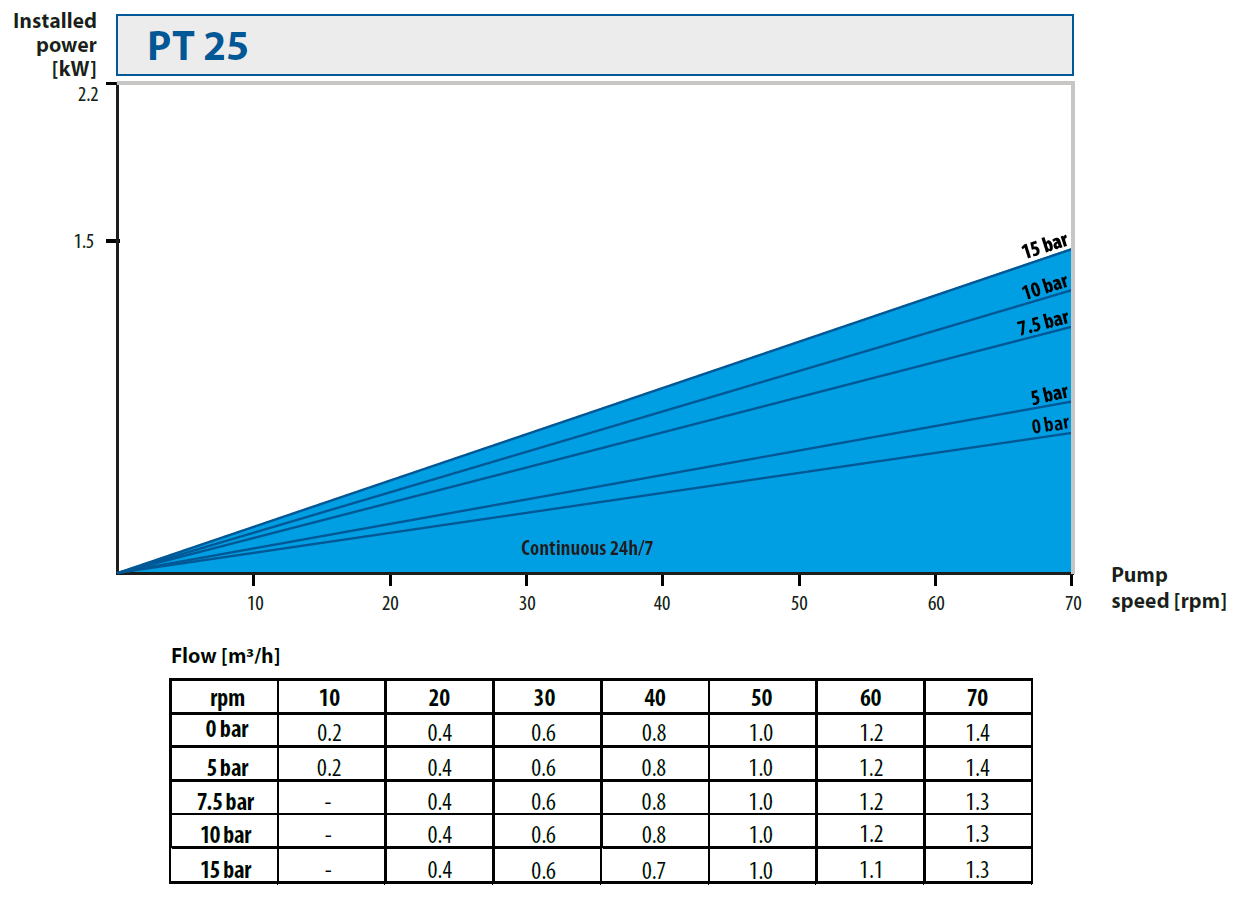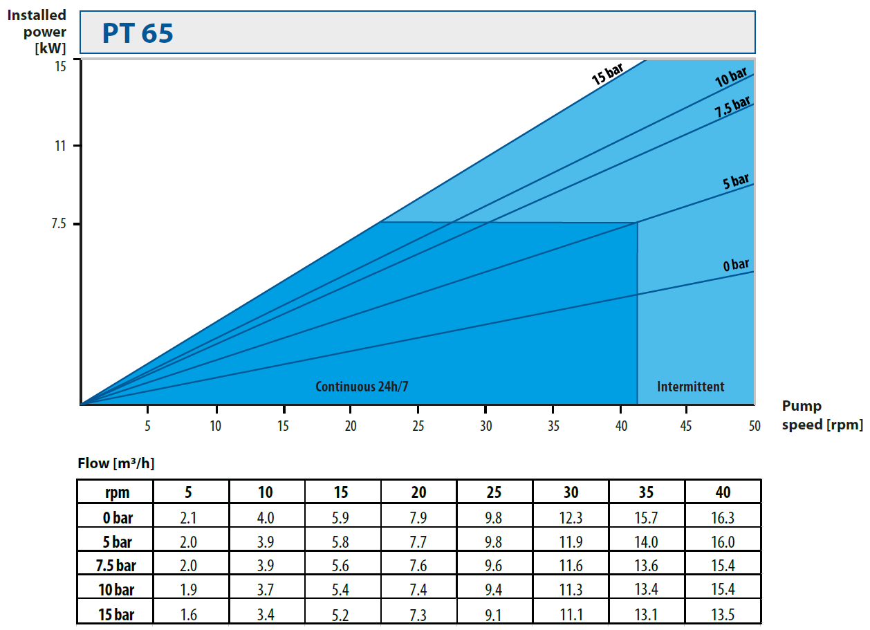 De pomp genereert wrijving en warmte, terwijl hij de slang samendrukt, daarom is constante smering met glycerine nodig om de warmte af te voeren. Dit ontwerp zorgt ervoor dat de pomp kan werken bij hogere afvoer drukken tot 15 bar, waardoor verstoppingen worden voorkomen en de levensduur van de slang wordt geoptimaliseerd.