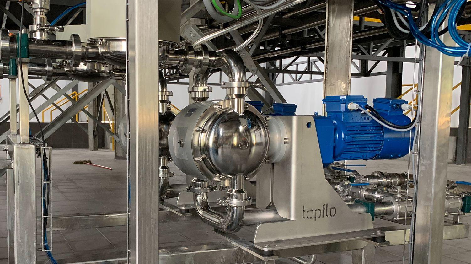 Genom ett medvetet val valdes till slut en överdimensionerad TE-pump som körs på så låg rpm som möjligt (5 Hz ~6 rpm), för att säkerställa varsam produkthantering.
