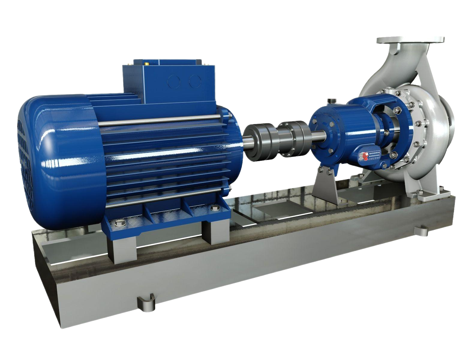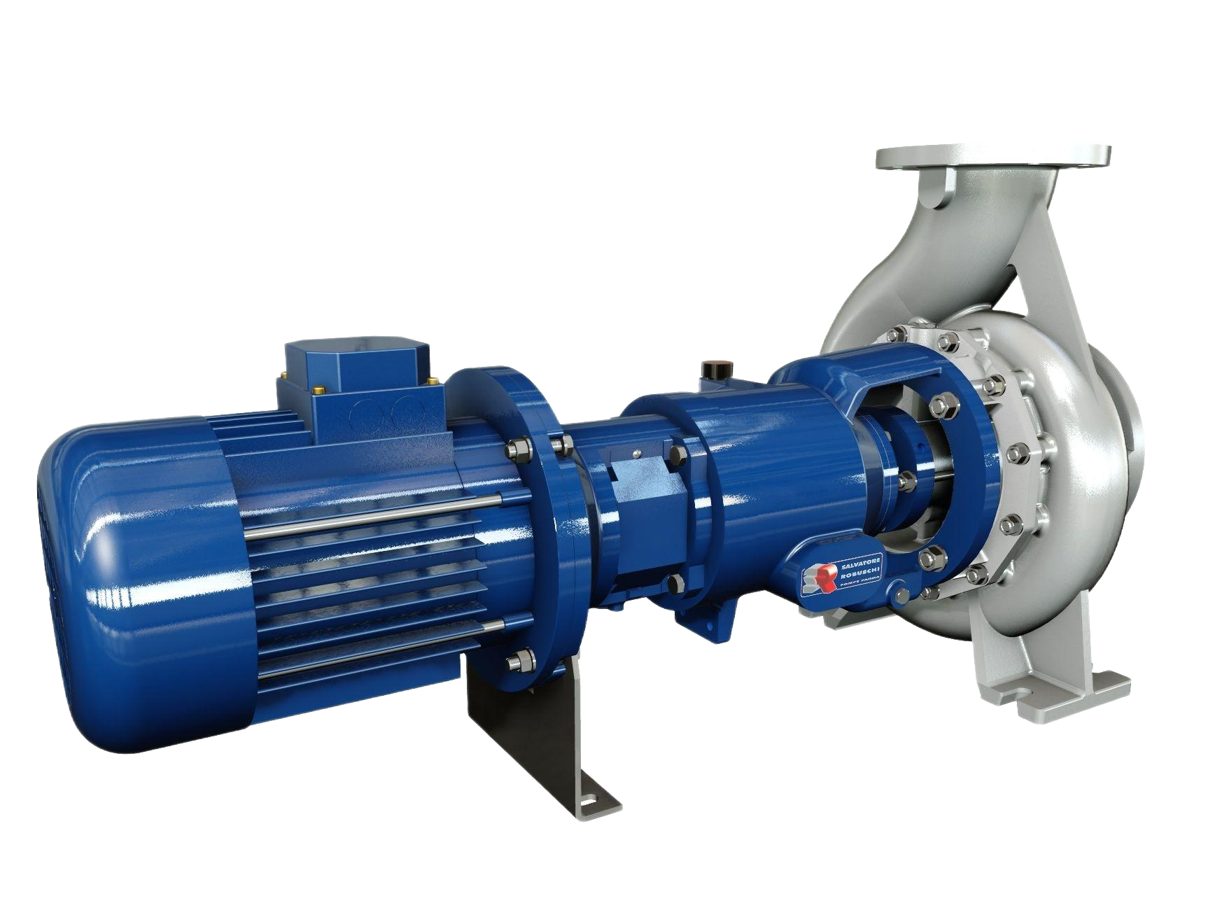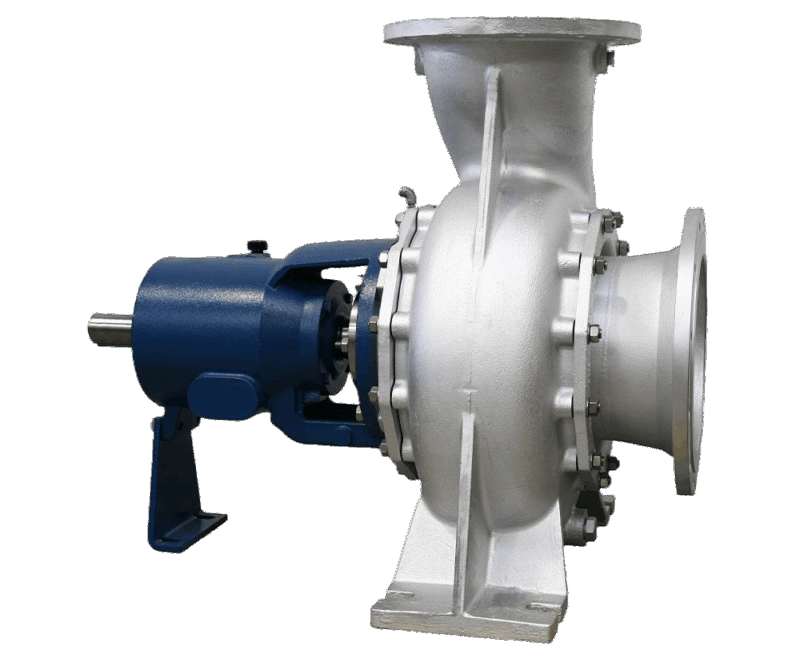 Impeller med speciell bladgeometri för lågt NPSH och stor fri passage. Robust pump för hantering av rena eller lätt förorenade vätskor inom en mängd industrier. Lagerbock enligt ISO 2858 och ISO 5199 .