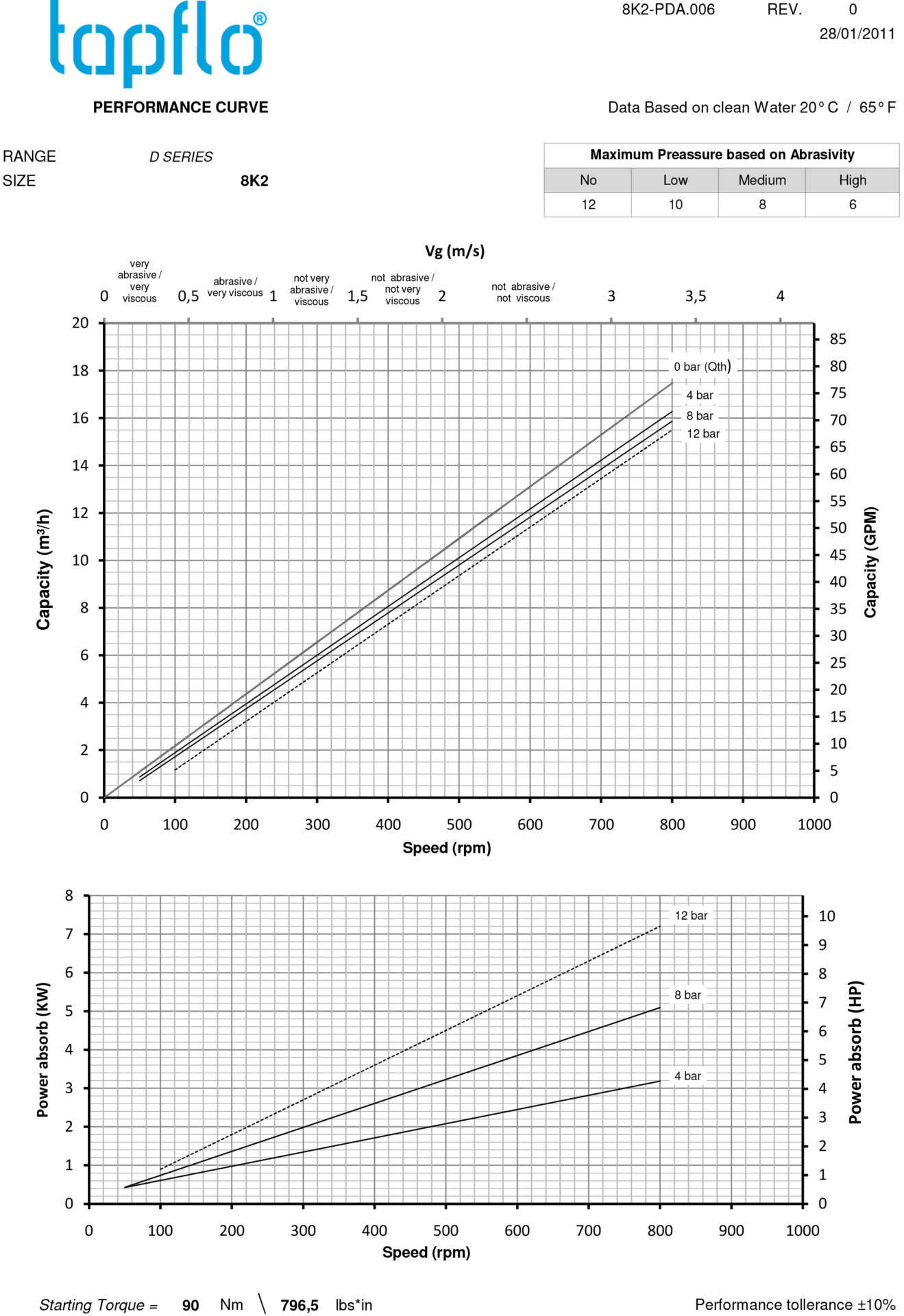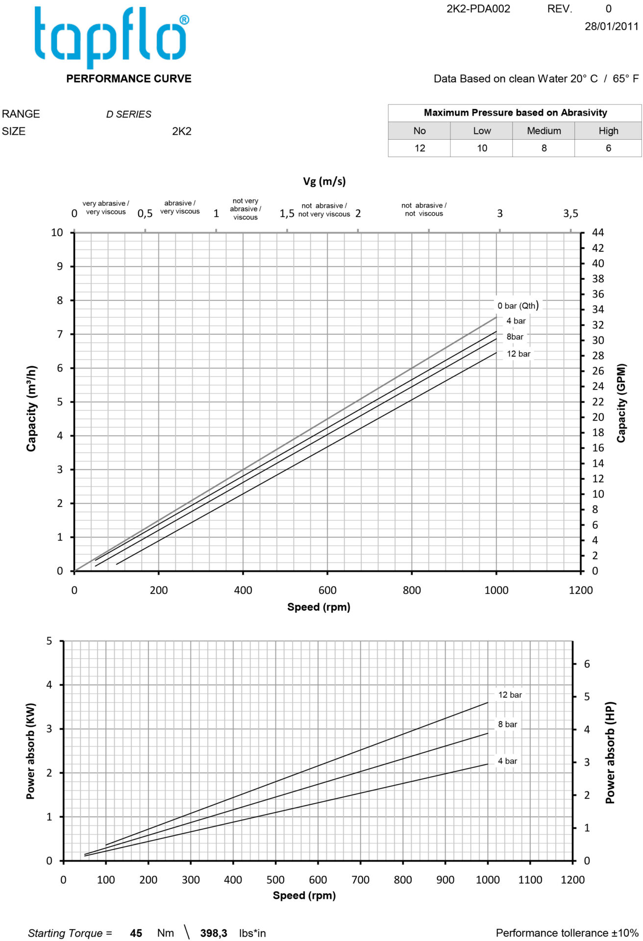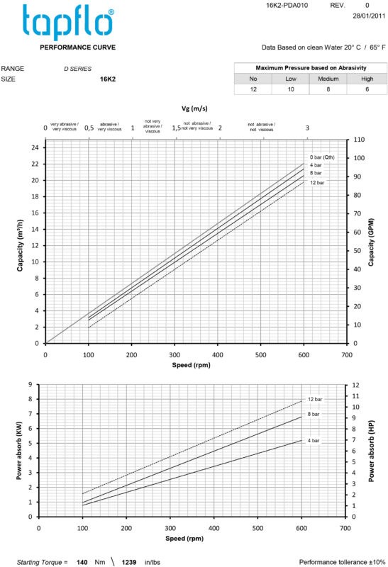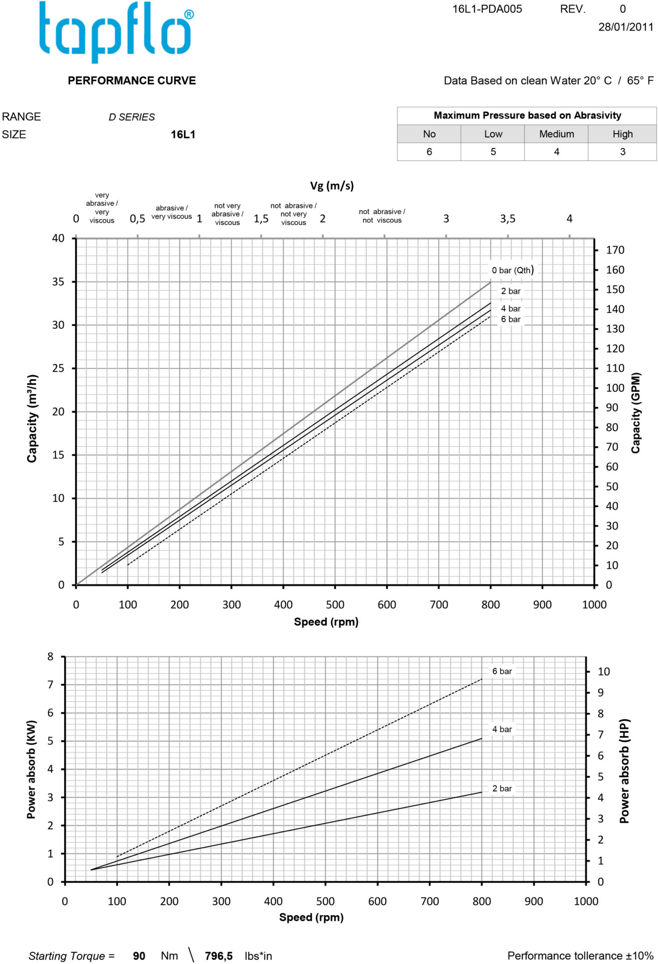 | Storlek | Modell | Flöde vid 2 bar(m3/h) | Max tryck bar |