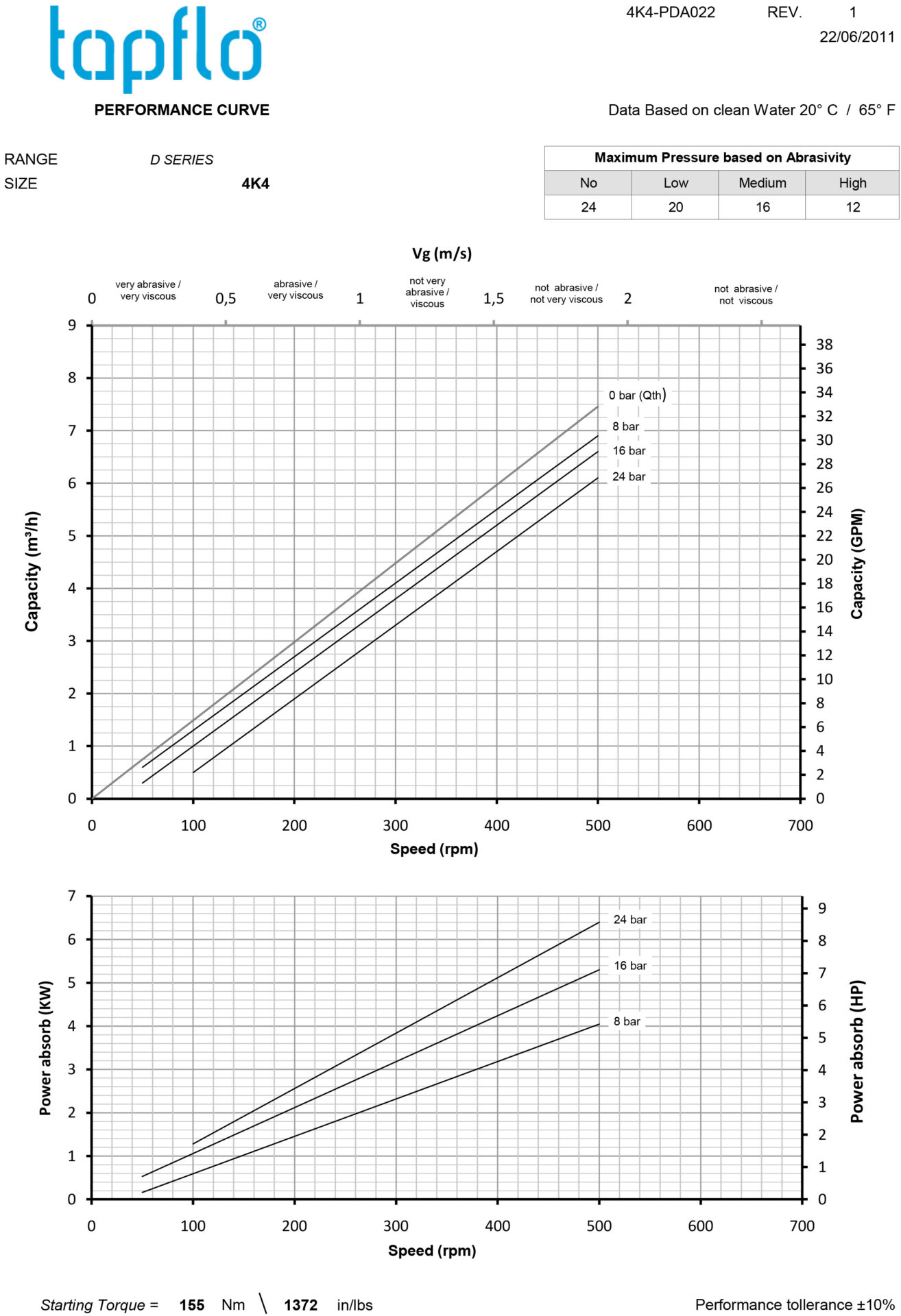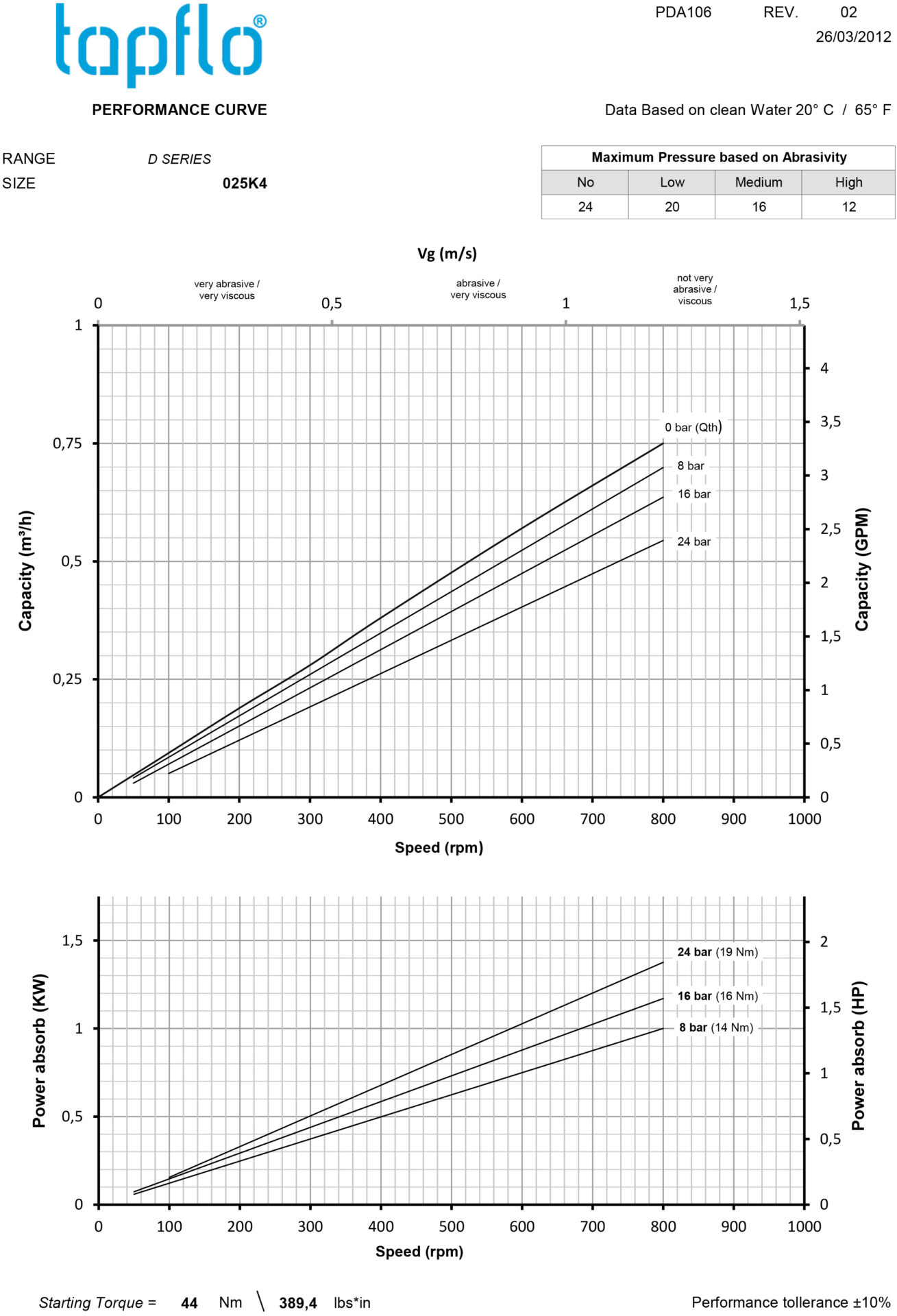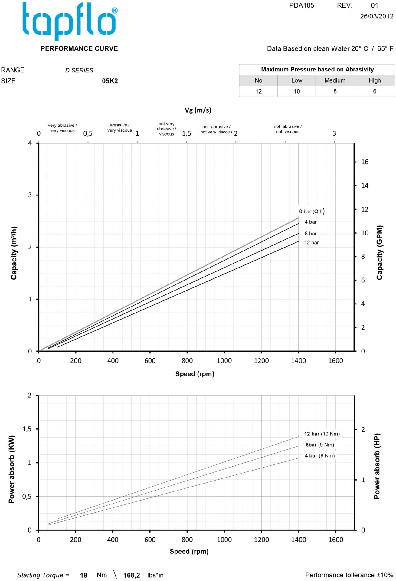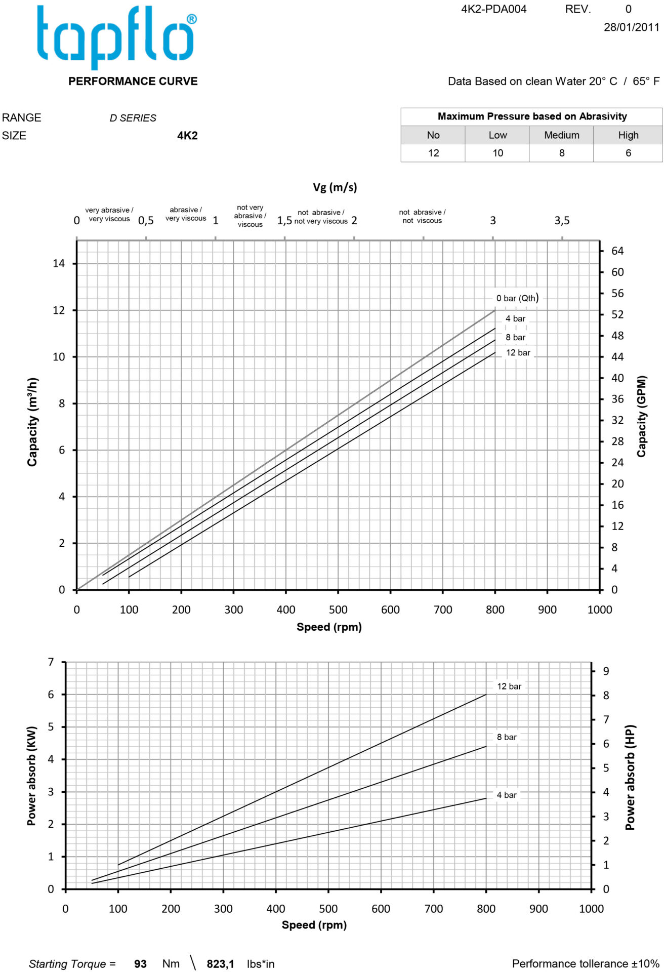 | Storlek | Modell | Flöde vid 2 bar(m3/h) | Max tryck bar |