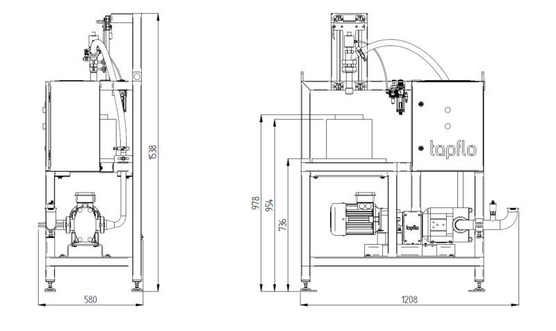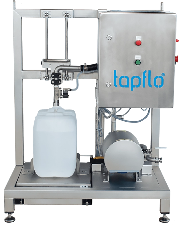Fyllningssystemet är anpassningsbart för att möta dina specifika behov. Du kan välja mellan olika pumptyper – exempelvis membranpumpar, lobrotorpumpar, centrifugalpumpar, kugghjulspumpar eller peristaltiska pumpar – beroende på produktens viskositet, skjuvningskänslighet och andra egenskaper. Komponenter som kommer i kontakt med mediet är tillverkade av rostfritt stål AISI 316 eller specialplast som polypropylen för aggressiva medier. För applikationer med sådana medier omfattar systemet ett spillfat i plast för ökad säkerhet och bekvämlighet. Vågar finns i olika storlekar, vilket ger flexibilitet för att rymma olika behållardimensioner.