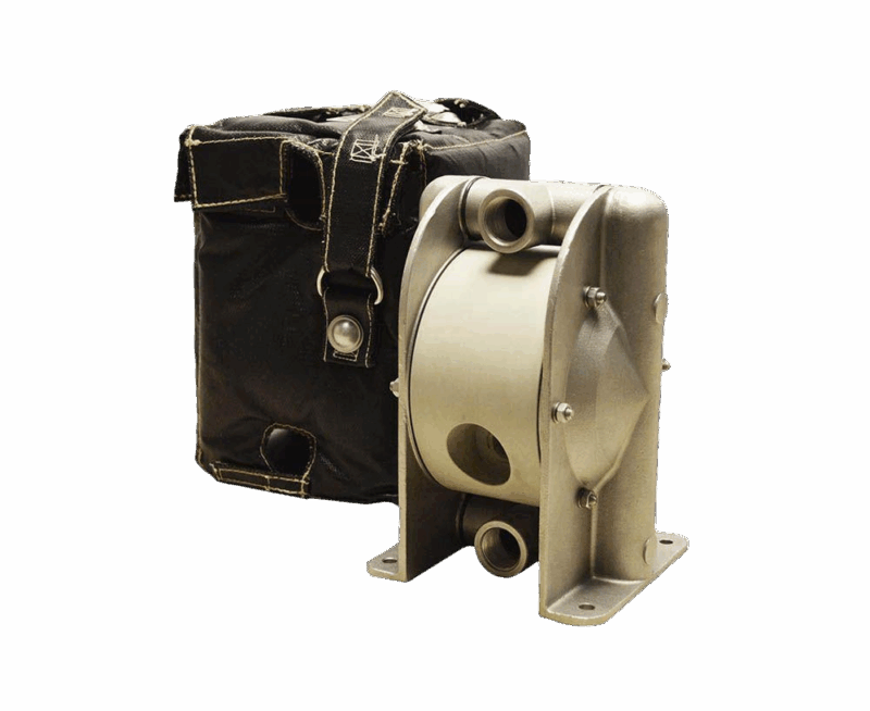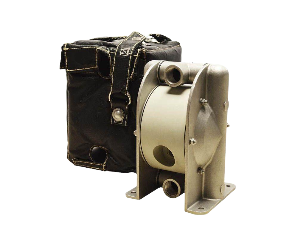 Värmande huvor och ljuddämpande skydd finns att beställa till de flesta av våra tryckluftsdrivna membranpumpar.