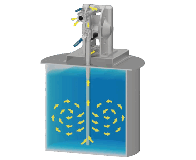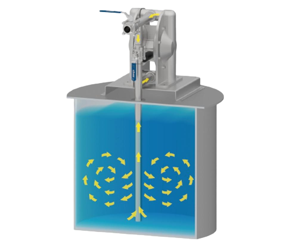 Pneumixern är en kombination av Tapflo membranpump och mixer/omrörare vilken möjliggör just pumpning och mixning i en och samma enhet.