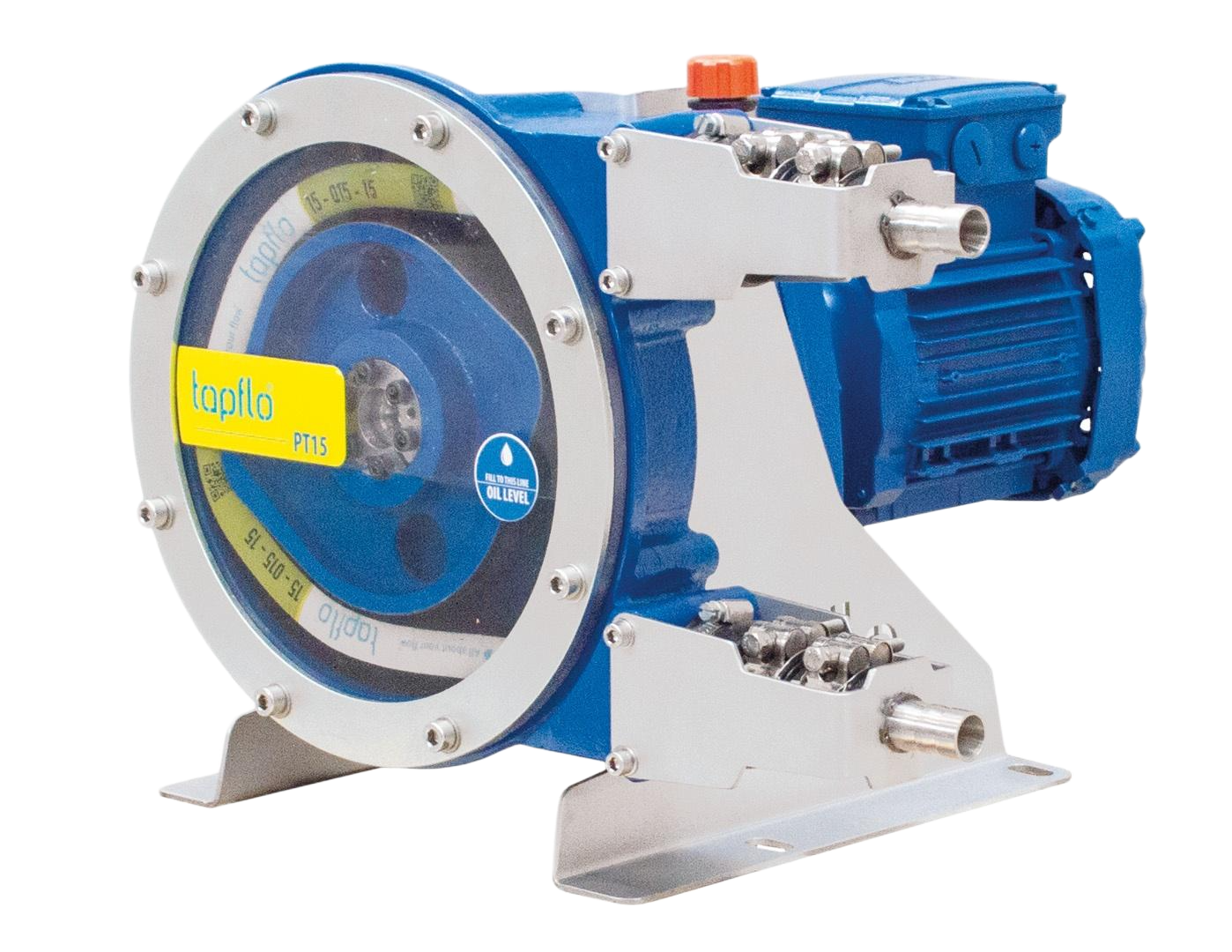 Tapflo slangpumpsortiment är en serie pumpar för industriella och hygieniska applikationer. Pumparna är konstruerade för att vara säkra, enkla samt lättanvända och lättunderhållna. Pumparna är lämpliga för nästan alla olika vätskor som används inom industrin idag. Pumparna drivs av en elmotor som är kopplad till rotorn. För att minska motorns varvtal används en växellåda.